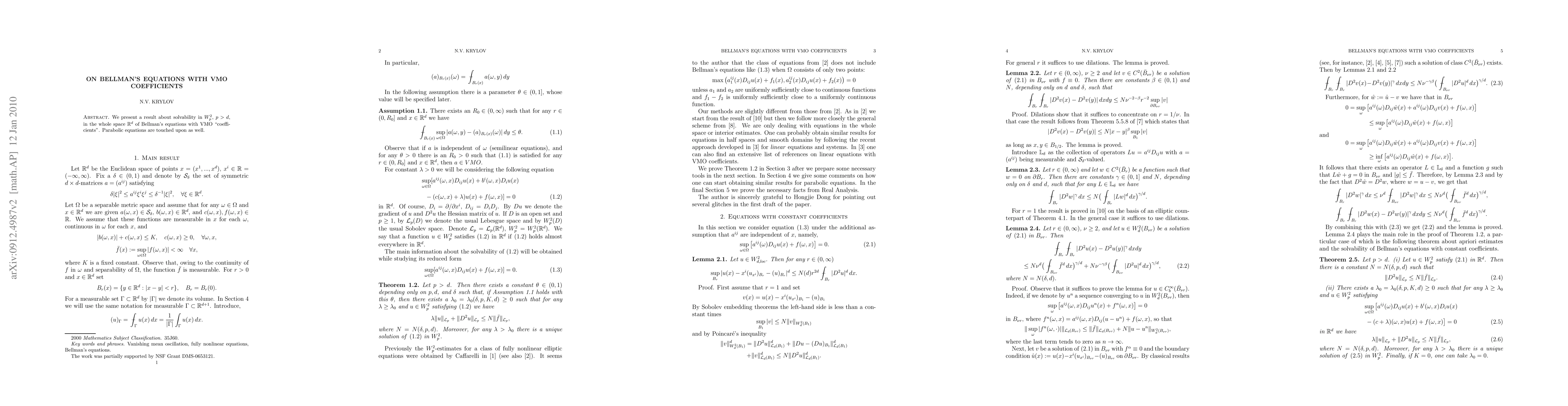 We present a result about solvability in $W^{2}_{p}$, $p>d$, in the whole space $\bR^{d}$ of Bellman's equations with VMO ``coefficients''. Parabolic equations are touched upon as well.