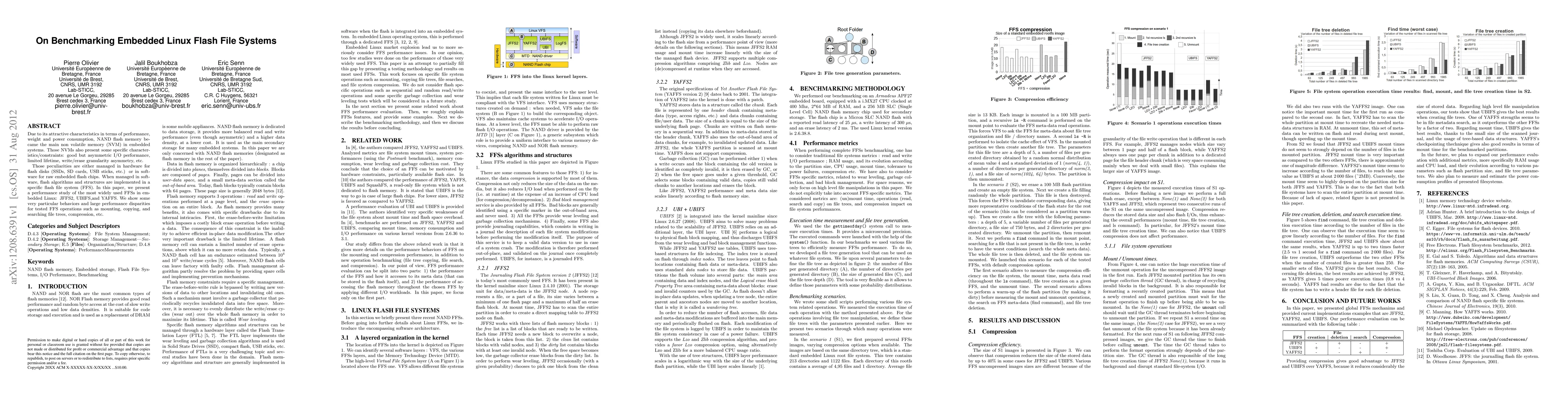 This paper benchmarks the performance of JFFS2, UBIFS, and YAFFS, the three most widely used flash file systems in embedded Linux, highlighting their specific behaviors and significant performance disparities in operations like mounting, copying, and file tree searching.