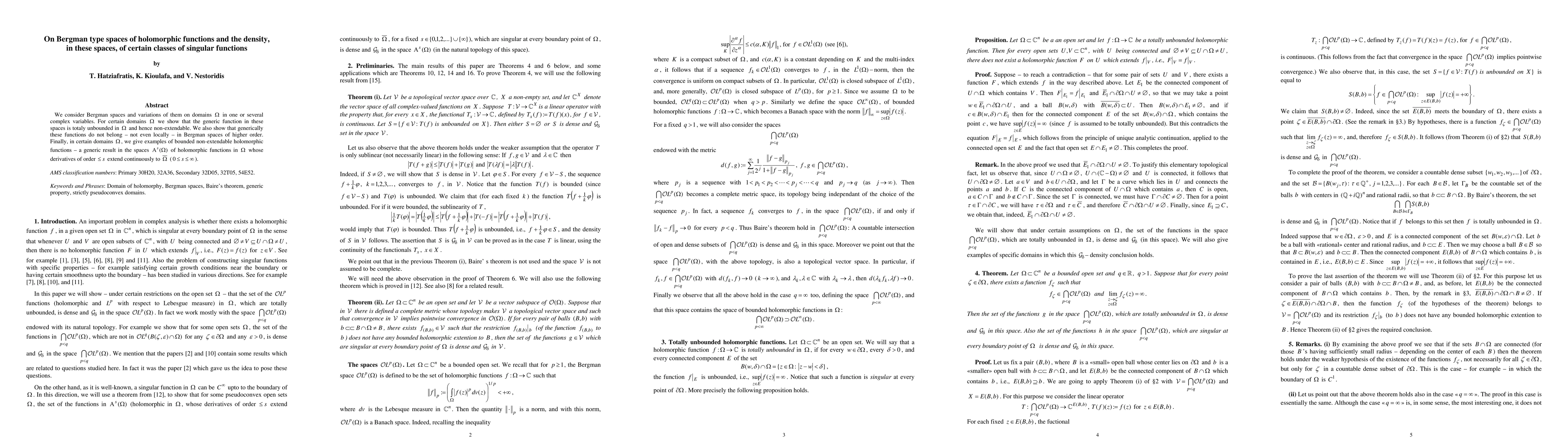 We consider Bergman spaces and variations of them in one or several complex variables. For some domains we show that in these spaces the generic function is totally unbounded and hence non - extendable. We also show that the generic function is not - even locally - in Bergman spaces of higher order. Finally, in certain domains we consider the space of holomorphic functions whose derivatives up to some order extend continuously to the closure of the domain endowed with its natural topology. Generically, every function in this space is proven to be non - extendable, although bounded.