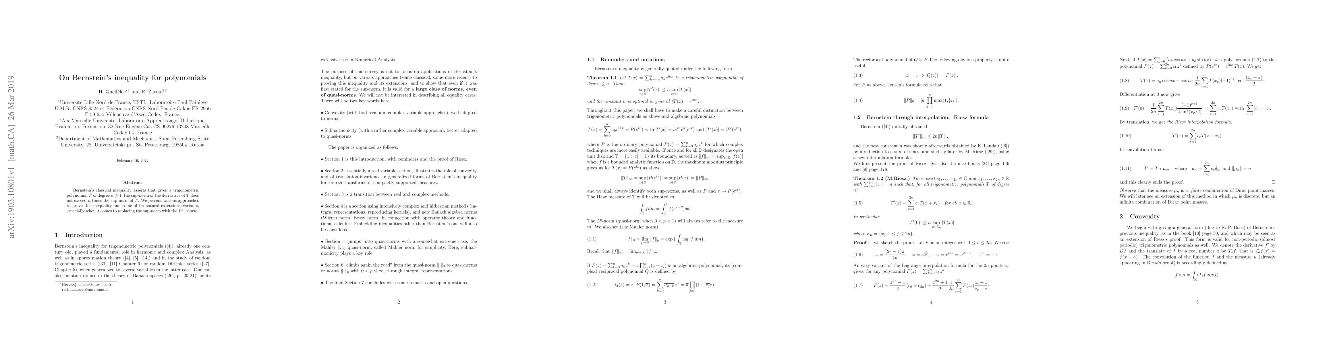 Summary: This paper explores different methods to prove Bernstein's classical inequality for trigonometric polynomials and extends it by replacing the sup-norm with the $L^p$-norm. The focus is on the relationship between the derivative's norm and the original polynomial's norm.