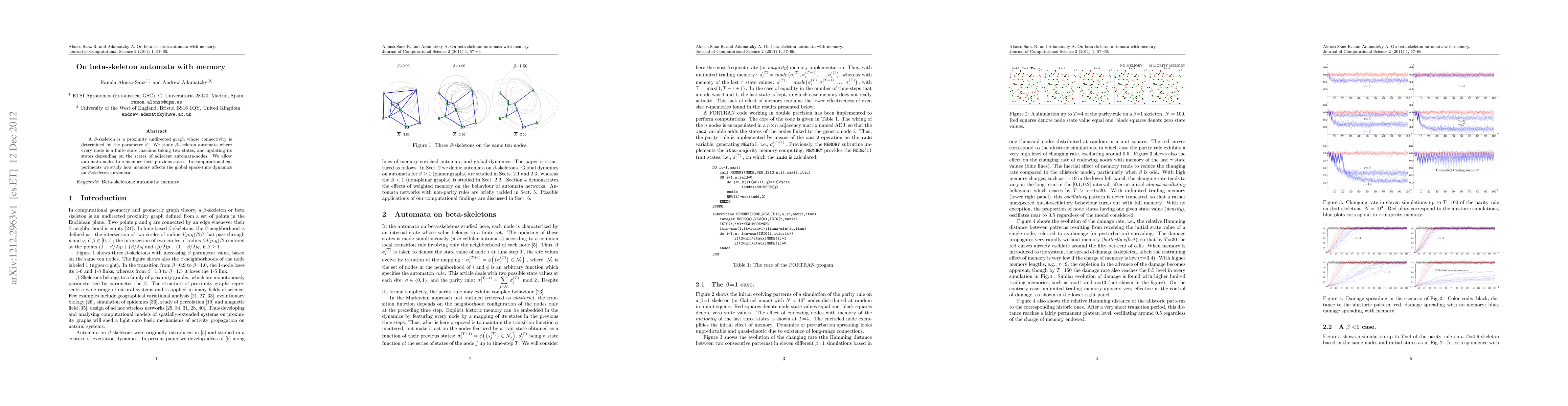 This paper investigates beta-skeleton automata, where each node is a finite state machine that updates its state based on adjacent nodes' states and can remember previous states. The study examines how memory influences the global space-time dynamics of these automata.