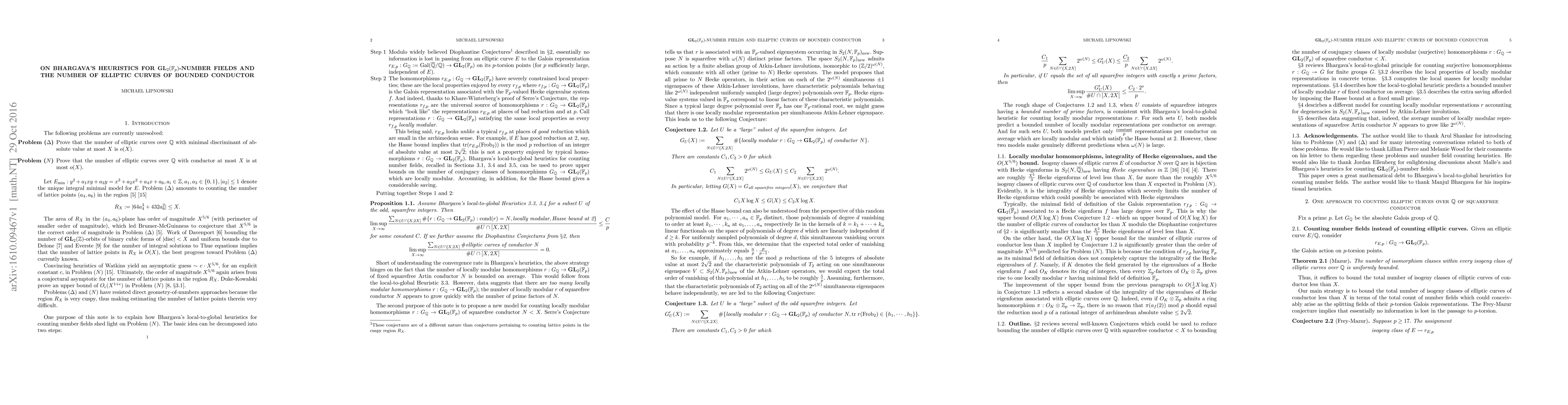 We propose a new model for counting $\mathbf{GL}_2(\mathbb{F}_p)$-number fields having the same local properties as the splitting field of the mod $p$-Galois representation associated with an elliptic curve over the rational numbers. We explain how this new model and Bhargava's local-to-global heuristics for counting $\mathbf{GL}_2(\mathbb{F}_p)$-number fields both shed light on the problem of estimating the number of elliptic curves over the rational numbers of squarefree conductor $N < X.$ The new model predicts the existence of significantly more $\mathbf{GL}_2(\mathbb{F}_p)$-number fields with the desired local properties than does the local-to-global model when $N$ has a large number of distinct prime factors, owing to degeneracies caused by Atkin-Lehner involutions. We describe computational evidence supporting the new model.