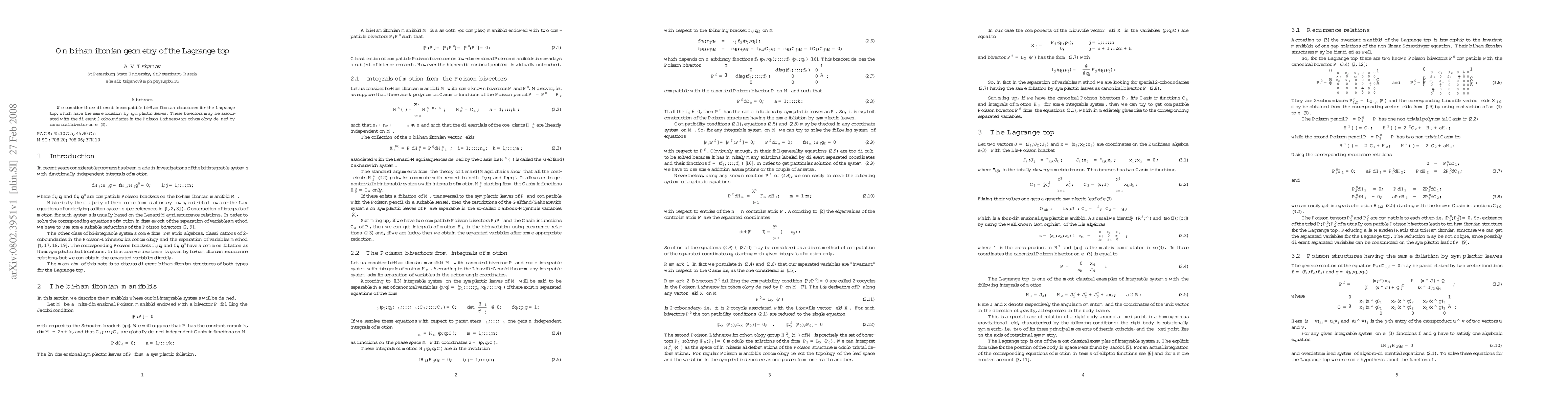 We consider three different incompatible bi-Hamiltonian structures for the Lagrange top, which have the same foliation by symplectic leaves. These bivectors may be associated with the different 2-coboundaries in the Poisson-Lichnerowicz cohomology defined by canonical bivector on $e^*(3)$.