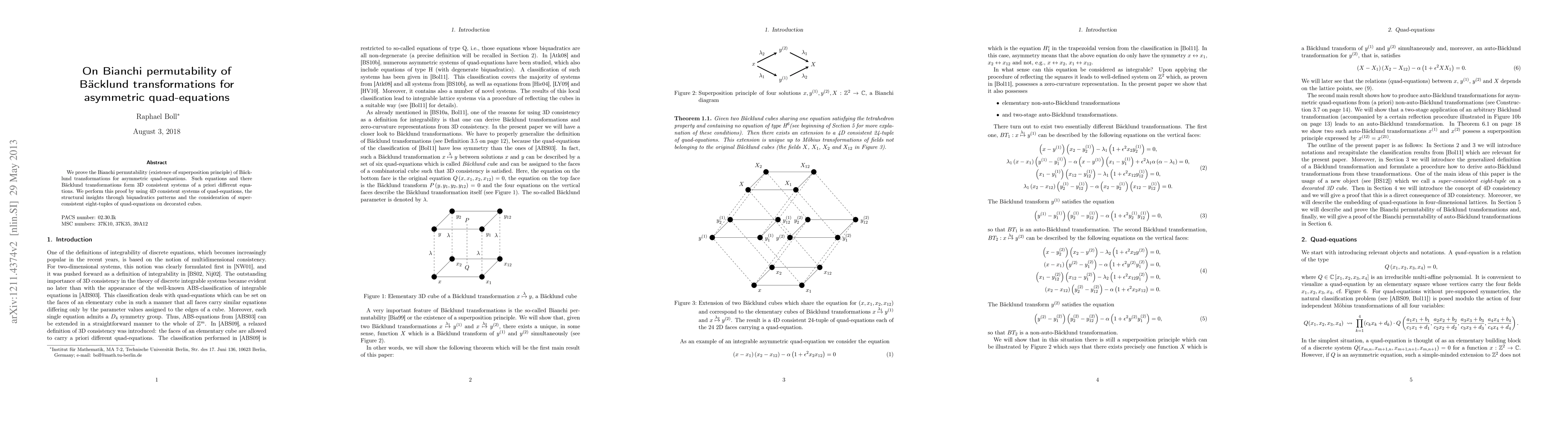 Summary: This paper proves the Bianchi permutability of Bäcklund transformations for asymmetric quad-equations, establishing a superposition principle through insights from 4D consistent systems and biquadratic patterns, and utilizing super-consistent eight-tuples on decorated cubes.