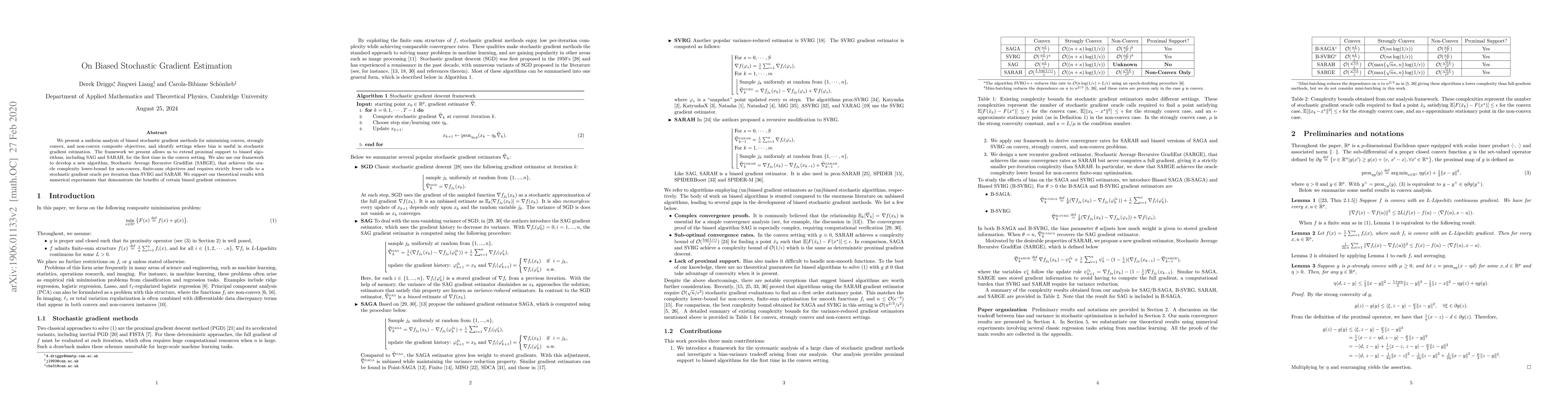 We present a uniform analysis of biased stochastic gradient methods for minimizing convex, strongly convex, and non-convex composite objectives, and identify settings where bias is useful in stochastic gradient estimation. The framework we present allows us to extend proximal support to biased algorithms, including SAG and SARAH, for the first time in the convex setting. We also use our framework to develop a new algorithm, Stochastic Average Recursive GradiEnt (SARGE), that achieves the oracle complexity lower-bound for non-convex, finite-sum objectives and requires strictly fewer calls to a stochastic gradient oracle per iteration than SVRG and SARAH. We support our theoretical results with numerical experiments that demonstrate the benefits of certain biased gradient estimators.