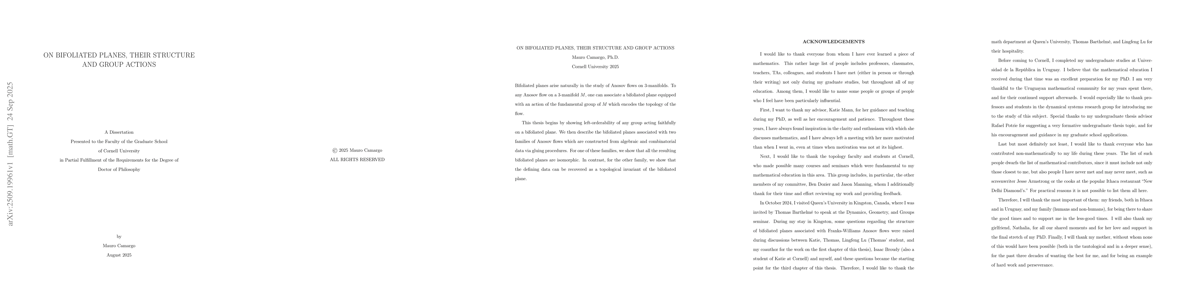Bifoliated planes arise naturally in the study of Anosov flows on $3$-manifolds. To any Anosov flow on a $3$-manifold $M$, one can associate a bifoliated plane equipped with an action of the fundamental group of $M$ which encodes the topology of the flow. This thesis begins by showing left-orderability of any group acting faithfully on a bifoliated plane. We then describe the bifoliated planes associated with two families of Anosov flows which are constructed from algebraic and combinatorial data via gluing procedures. For one of these families, we show that all the resulting bifoliated planes are isomorphic. In contrast, for the other family, we show that the defining data can be recovered as a topological invariant of the bifoliated plane.