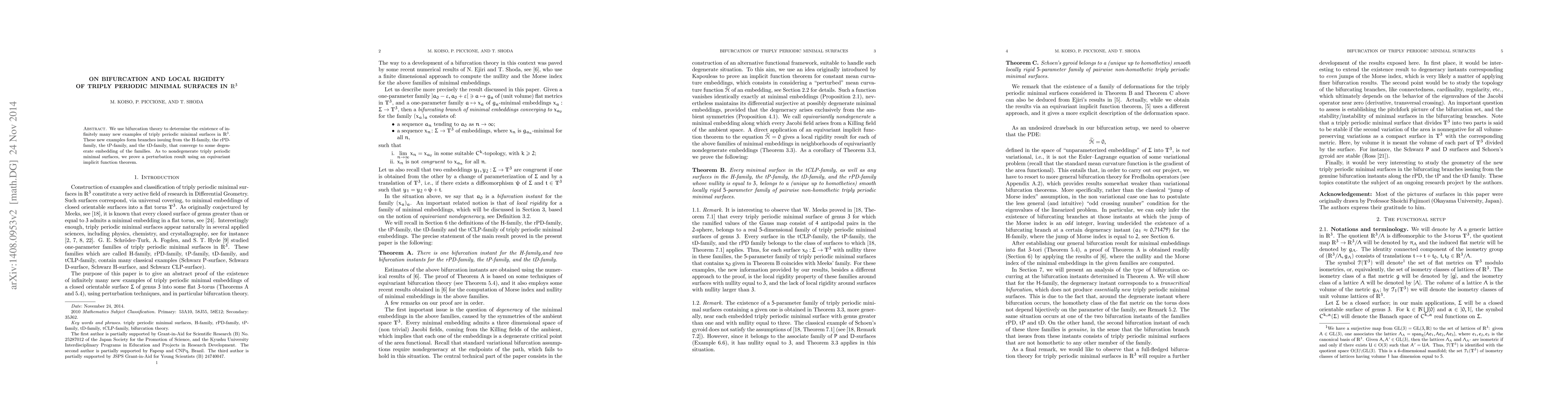 This paper employs bifurcation theory to discover new triply periodic minimal surfaces in $\mathbb R^3$, branching from existing families and converging to degenerate embeddings. It also proves a perturbation result for nondegenerate surfaces using an equivariant implicit function theorem.