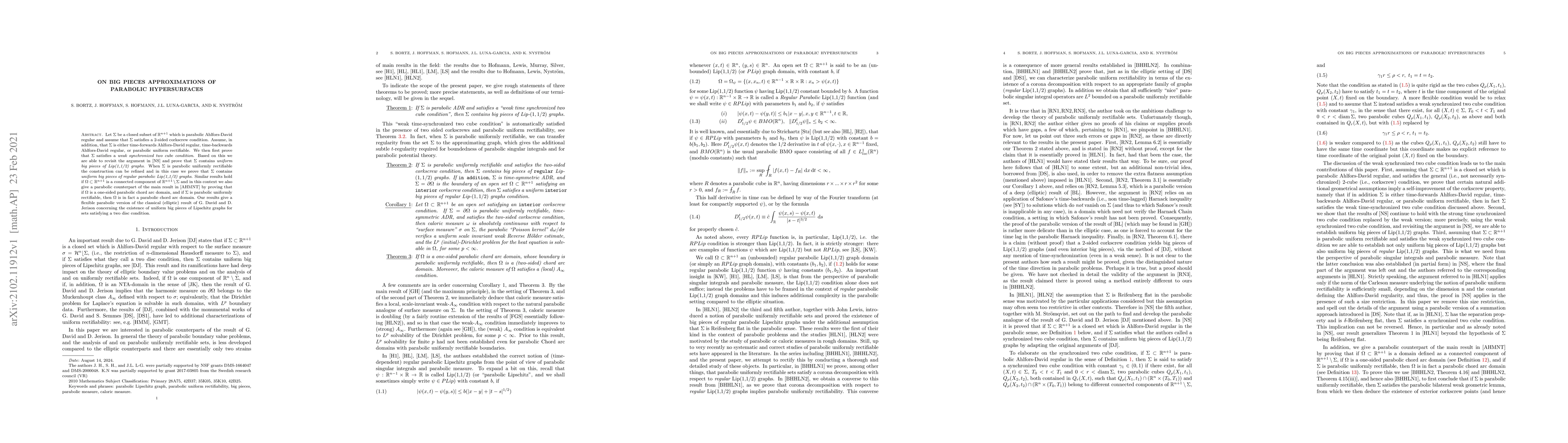 This research paper proves that certain parabolic hypersurfaces contain uniform big pieces of Lipschitz graphs, extending a classical result to the parabolic case.