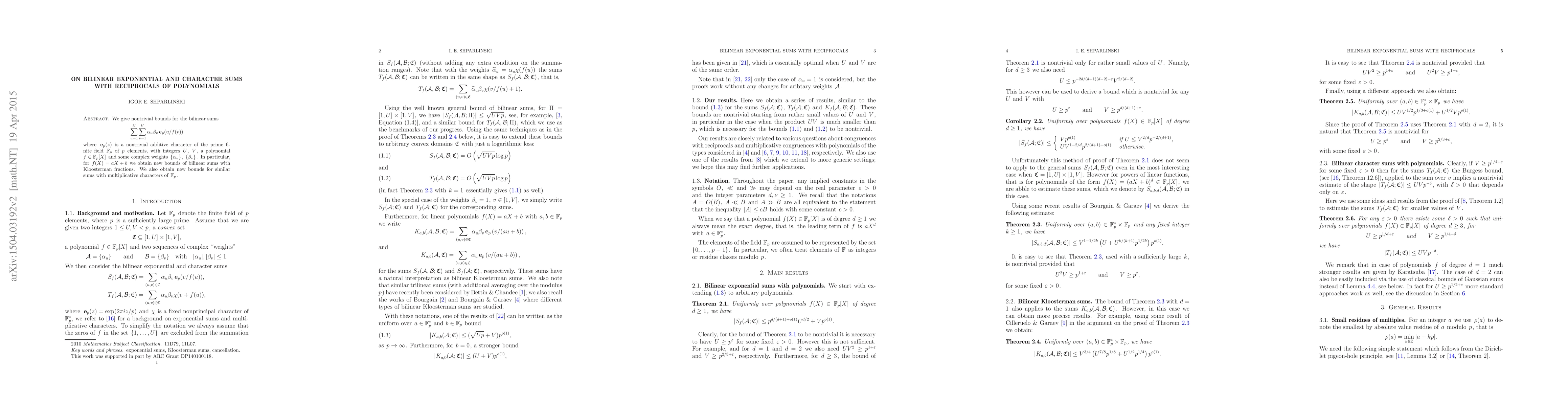New bounds for bilinear sums involving exponential characters and reciprocals of polynomials are established, with applications to Kloosterman fractions and multiplicative characters.
