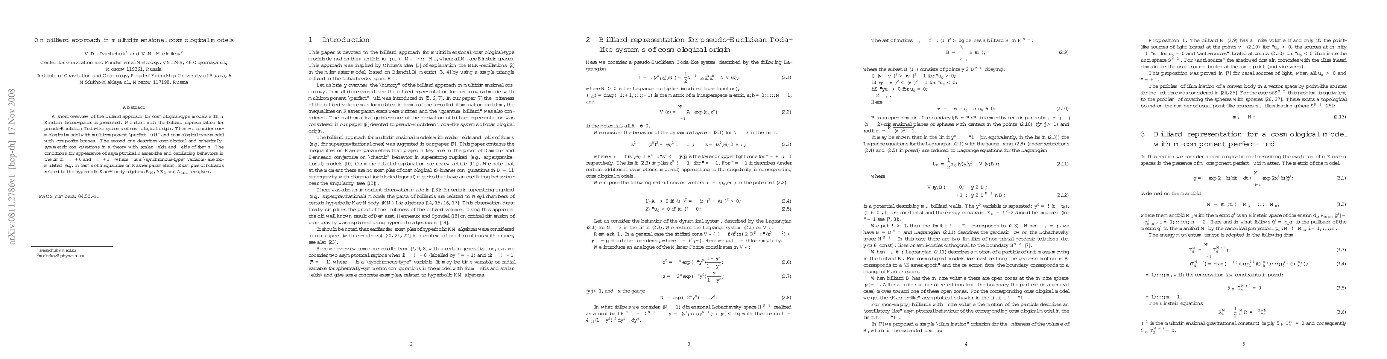 This paper explores the billiard approach in multidimensional cosmological models, focusing on pseudo-Euclidean Toda-like systems and models with perfect-fluid and composite branes. It formulates conditions for asymptotical Kasner-like and oscillating behaviors, and provides examples related to hyperbolic Kac-Moody algebras.