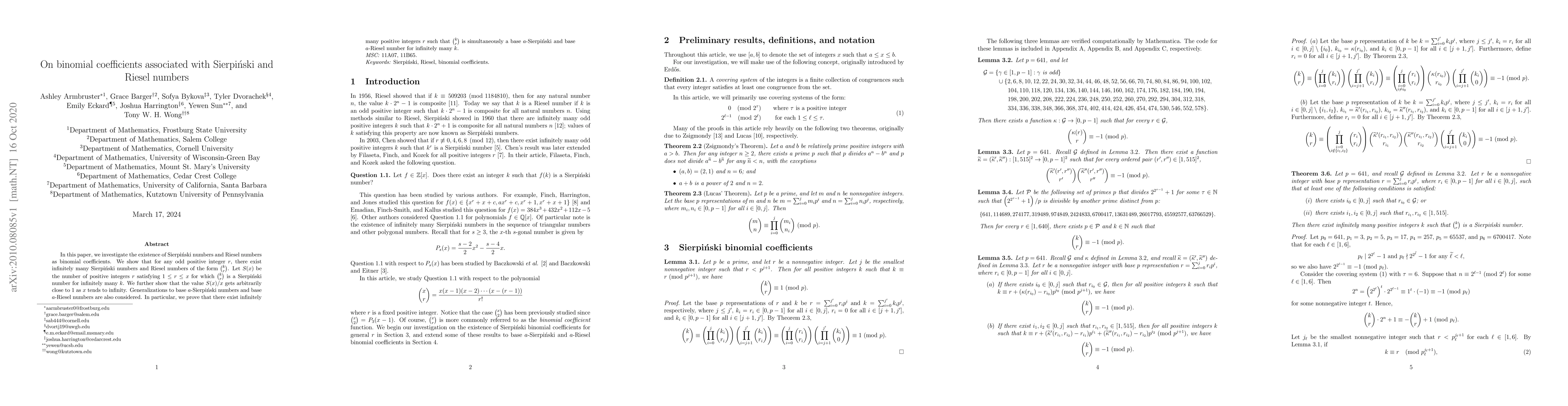 Research shows that Sierpiński numbers and Riesel numbers can be represented as binomial coefficients for infinitely many values of k, with the ratio of positive integers satisfying this condition to the total number getting arbitrarily close to 1 as x tends to infinity.