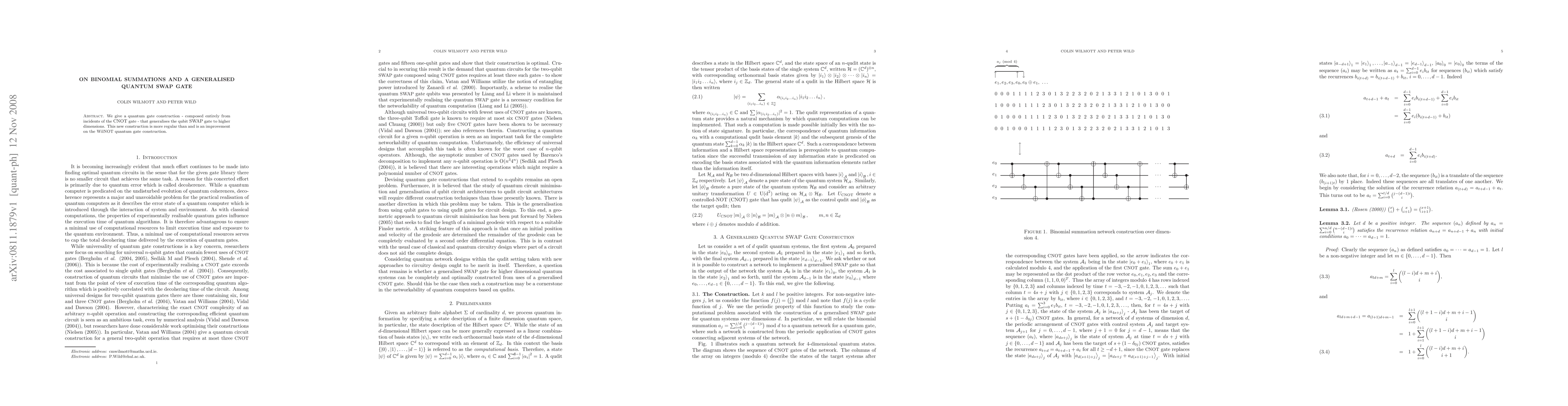 Summary: This paper presents a novel quantum gate construction using only CNOT gates, generalizing the qubit SWAP gate to higher dimensions, and demonstrating improved regularity over the existing WilNOT gate construction.