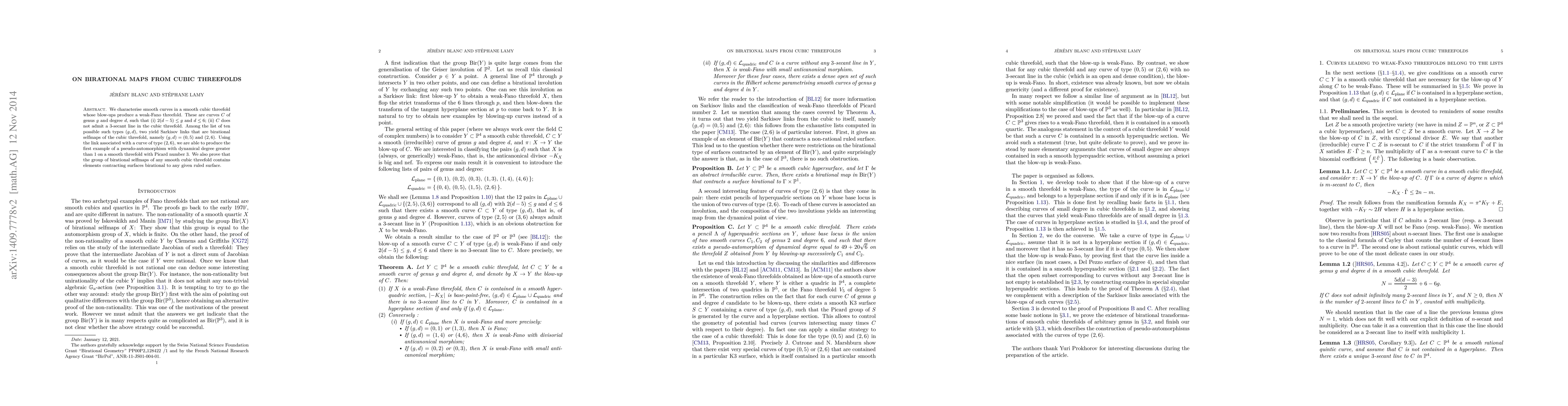 We characterise smooth curves in a smooth cubic threefold whose blow-ups produce a weak-Fano threefold. These are curves $C$ of genus $g$ and degree $d$, such that (i) $2(d-5) \le g$ and $d\le 6$; (ii) $C$ does not admit a 3-secant line in the cubic threefold. Among the list of ten possible such types $(g,d)$, two were previously left as open numerical possibilities, namely $(g,d) = (0,5)$ and $(2,6)$. Using the Sarkisov link associated with a curve of type $(2,6)$, we are able to produce the first example of a pseudo-automorphism with dynamical degree greater than $1$ on a smooth threefold with Picard number $3$. We also prove that the group of birational selfmaps of any smooth cubic threefold contains elements contracting surfaces birational to any given ruled surface.