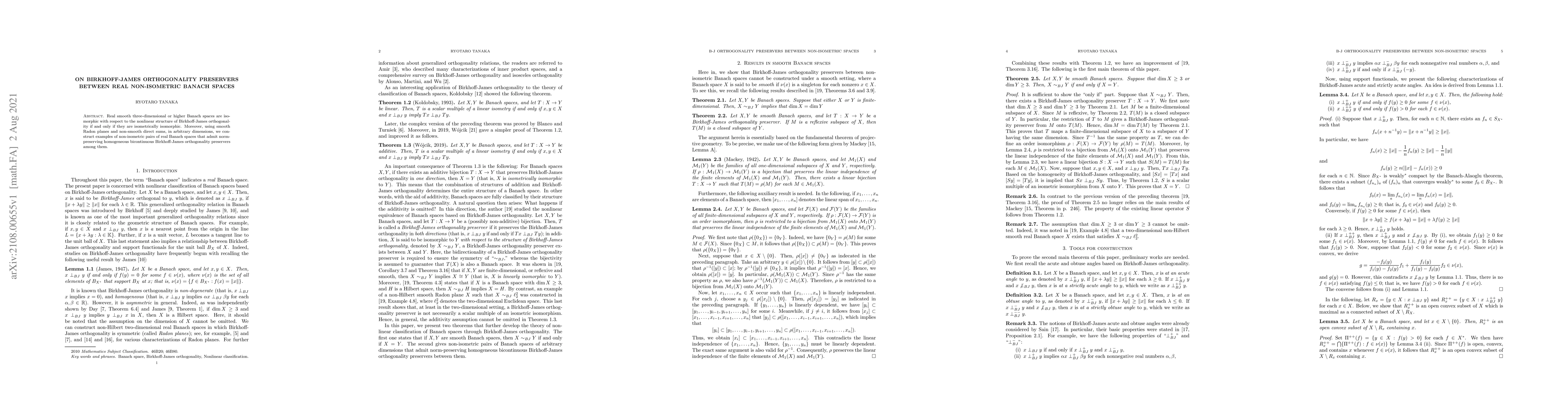 Summary: The paper proves that real smooth Banach spaces are isometrically isomorphic if they are isomorphic with respect to Birkhoff-James orthogonality. It also constructs examples of non-isometric real Banach spaces with norm-preserving bicontinuous maps preserving Birkhoff-James orthogonality.
