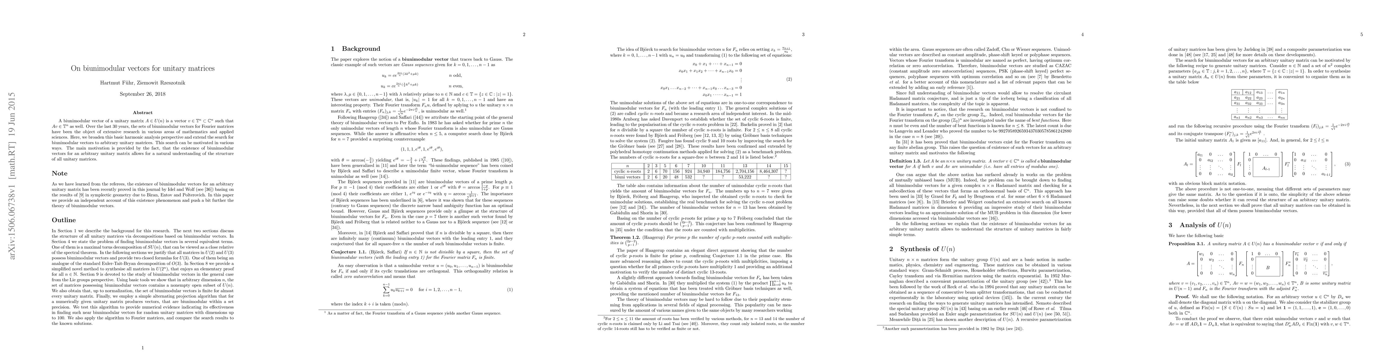 A biunimodular vector of a unitary matrix $A \in U(n)$ is a vector $v \in \mathbb{T}^n\subset\bc^n$ such that $Av \in \mathbb{T}^n$ as well. Over the last 30 years, the sets of biunimodular vectors for Fourier matrices have been the object of extensive research in various areas of mathematics and applied sciences. Here, we broaden this basic harmonic analysis perspective and extend the search for biunimodular vectors to arbitrary unitary matrices. This search can be motivated in various ways. The main motivation is provided by the fact, that the existence of biunimodular vectors for an arbitrary unitary matrix allows for a natural understanding of the structure of all unitary matrices.