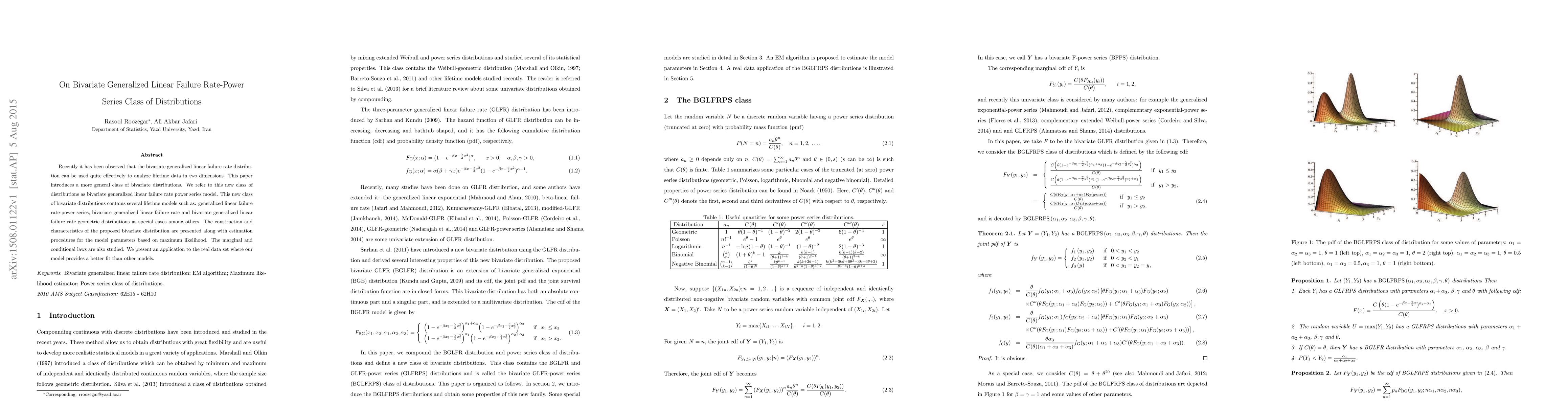 This paper introduces a new bivariate generalized linear failure rate power series model, encompassing several existing lifetime models as special cases. The paper details the construction, characteristics, and estimation procedures for the model parameters, and demonstrates its superior fit to real data compared to other models.
