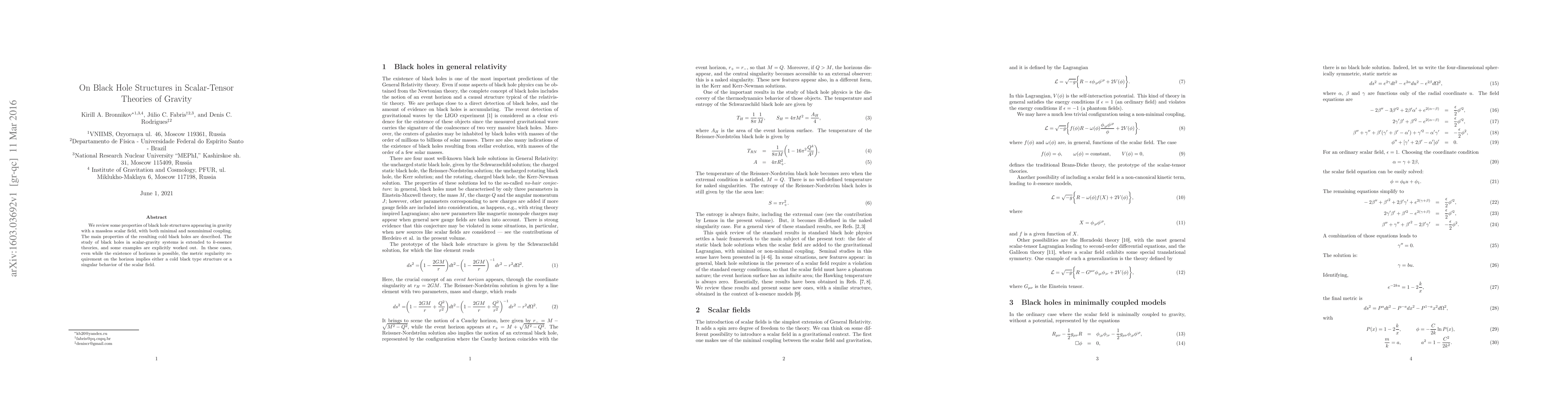 We review some properties of black hole structures appearing in gravity with a massless scalar field, with both minimal and nonminimal coupling. The main properties of the resulting cold black holes are described. The study of black holes in scalar-gravity systems is extended to $k$-essence theories, and some examples are explicitly worked out. In these cases, even while the existence of horizons is possible, the metric regularity requirement on the horizon implies either a cold black type structure or a singular behavior of the scalar field.
