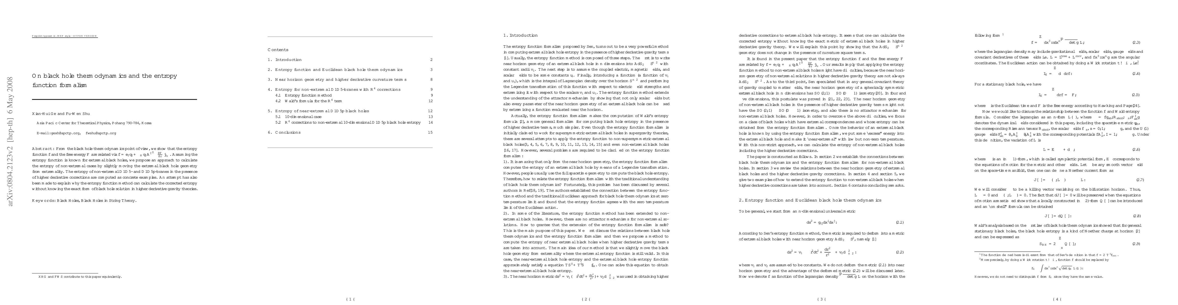 From the black hole thermodynamics point of view, we show that the entropy function $\mathbf{f}$ and the free energy $F$ are related via $\mathbf{f}=e_{I}q_{I}+\Omega_Hq_I{A_{\phi}^I}'-\frac{\partial F}{\partial r} |_{r_{H}}$. Assuming the entropy function is known for extremal black holes, we propose an approach to calculate the entropy of non-extremal cases by slightly moving the extremal black hole geometry from extremality. The entropy of non-extremal $D1D5$- and $D1D5p$-branes in the presence of higher derivative corrections are computed as concrete examples. An attempt has also been made to explain why the entropy function method can calculate the corrected entropy without knowing the exact form of black hole solution in higher derivative gravity theories.
