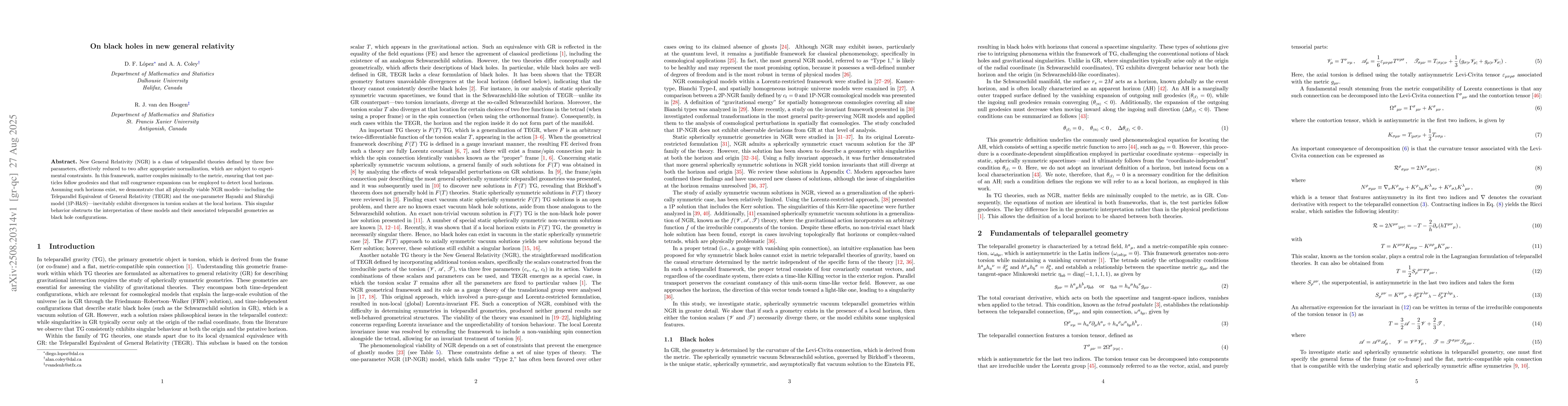 New General Relativity (NGR) is a class of teleparallel theories defined by three free parameters, effectively reduced to two after appropriate normalization, which are subject to experimental constraints. In this framework, matter couples minimally to the metric, ensuring that test particles follow geodesics and that null congruence expansions can be employed to detect local horizons. Assuming such horizons exist, we demonstrate that all physically viable NGR models--including the Teleparallel Equivalent of General Relativity (TEGR) and the one-parameter Hayashi and Shirafuji model (1P-H&S)--inevitably exhibit divergences in torsion scalars at the local horizon. This singular behavior obstructs the interpretation of these models and their associated teleparallel geometries as black hole configurations.