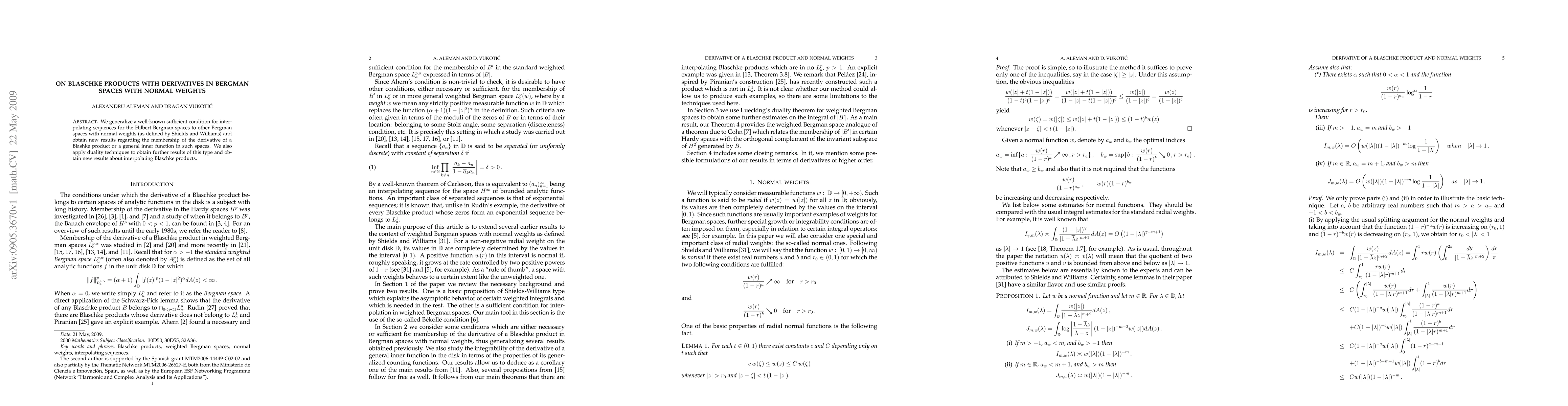 Researchers extend a known condition for interpolating sequences to Bergman spaces with normal weights, deriving new results about Blaschke products and their derivatives in these spaces.