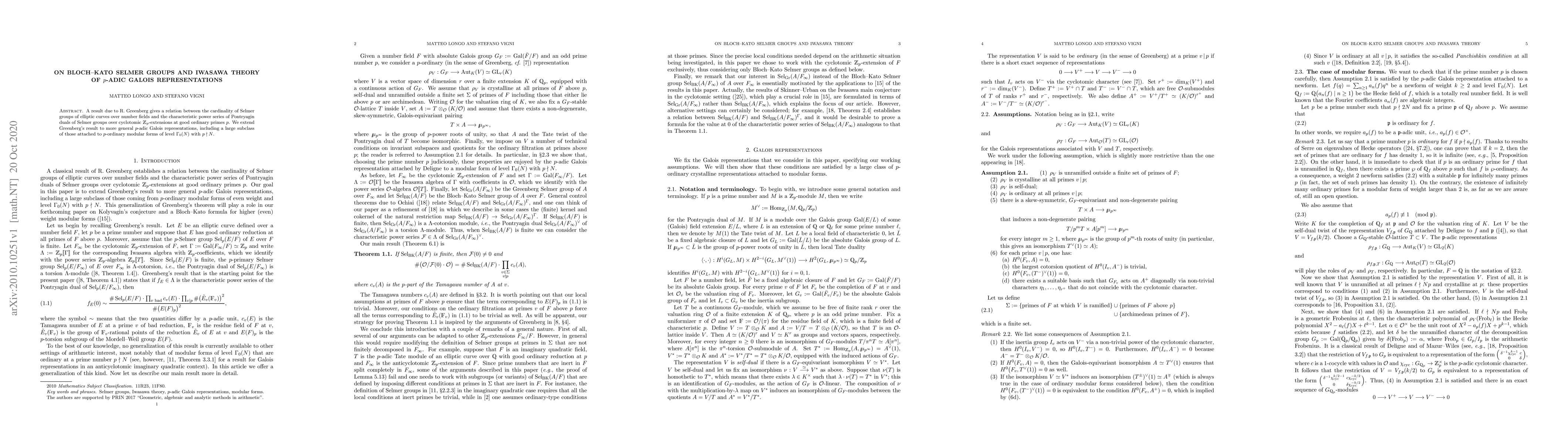 This paper extends Greenberg's result linking Selmer group cardinality and characteristic power series for elliptic curves to a broader class of $p$-adic Galois representations, particularly those related to $p$-ordinary modular forms of level $\Gamma_0(N)$ where $p$ does not divide $N$.