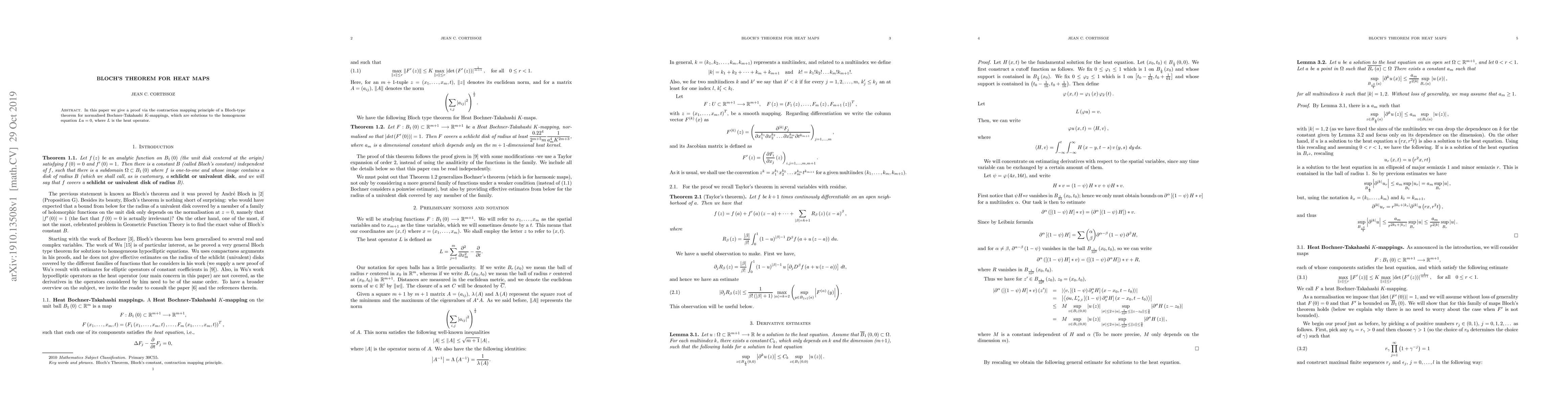 This paper proves a Bloch-type theorem for heat maps using the contraction mapping principle, providing solutions to equations of the form $Lu=0$, where $L$ is the heat operator.