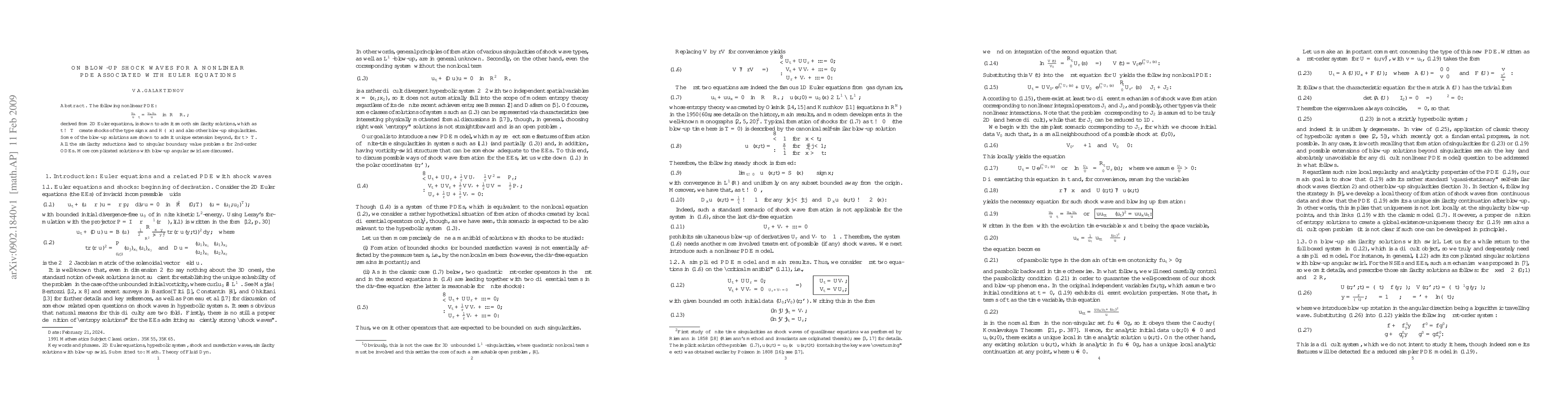 A second-order PDE is derived from Euler's equaitons under certain assumptions. It is shown that this PDE admits shock and rarefaction waves, and that a single point gradient blow-up admits a unique similarity extension after blow-up that settles uniqueness/entropy issues for such equations.
