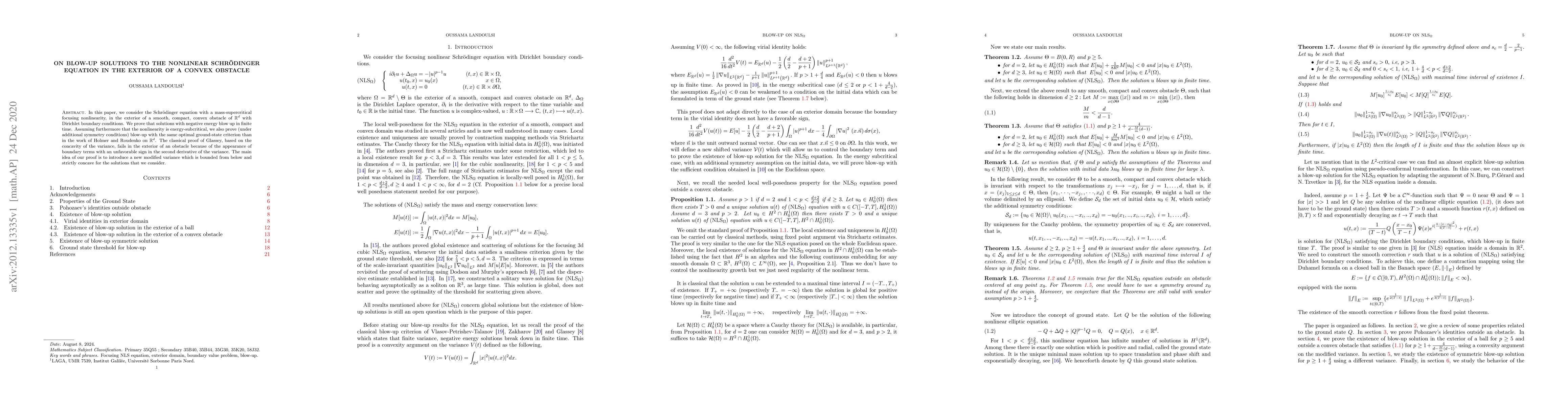 Research proves that solutions to a nonlinear Schrödinger equation in the exterior of a convex obstacle with negative energy blow up in finite time, but energy-subcritical cases have a similar ground-state criterion.