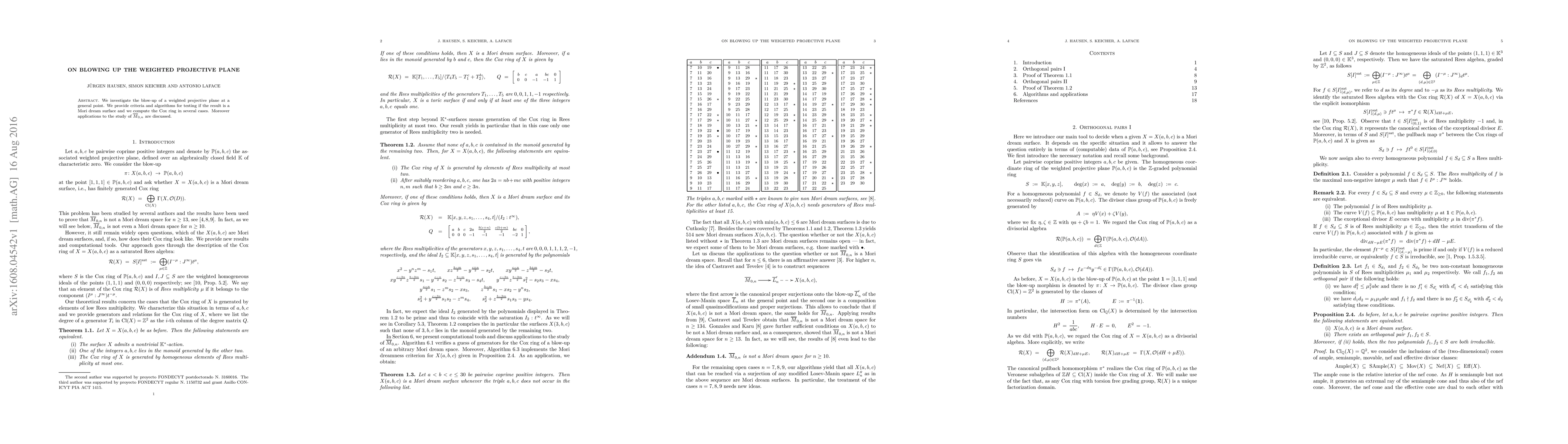 We investigate the blow-up of a weighted projective plane at a general point. We provide criteria and algorithms for testing if the result is a Mori dream surface and we compute the Cox ring in several cases. Moreover applications to the study of $\overline{M}_{0,n}$ are discussed.