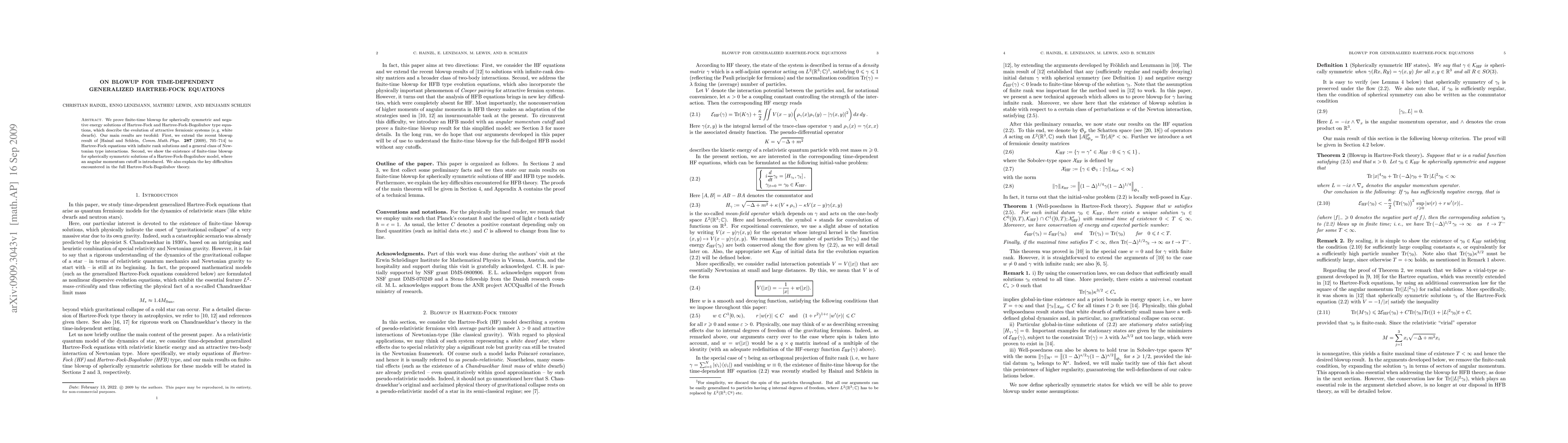 This paper proves finite-time blowup for spherically symmetric, negative energy solutions of generalized Hartree-Fock and Hartree-Fock-Bogoliubov equations, extending previous results to infinite rank solutions and general interactions. It also demonstrates blowup in the Hartree-Fock-Bogoliubov model with an angular momentum cutoff and discusses challenges in the full Hartree-Fock-Bogoliubov theory.