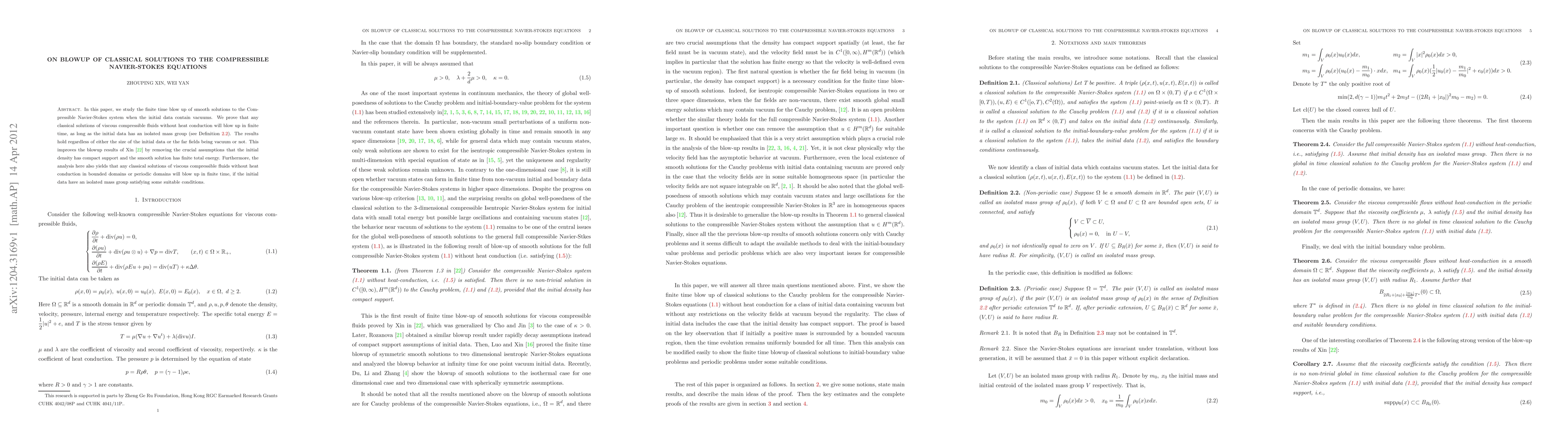 This paper proves that classical solutions to the compressible Navier-Stokes equations will blow up in finite time when initial data contains vacuums and an isolated mass group. It improves upon previous results by removing assumptions about initial density support and total energy.
