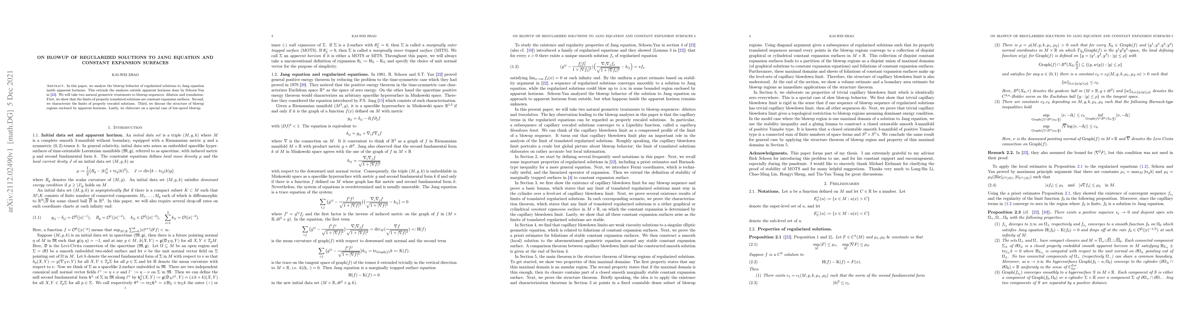 In this paper, we analyze the blowup behavior of regularized solutions to Jang equation inside apparent horizons. This extends the analyses outside apparent horizons done by Schoen-Yau. We will take two natural geometric treatments to blowup sequences: dilation and translation. First, we show that the limits of properly translated solutions are constant expansion surfaces. Second, we characterize the limits of properly rescaled solutions. Third, we discuss the structure of blowup regions enclosed by apparent horizons. Lastly, we elaborate on a special case of low-speed blowup.