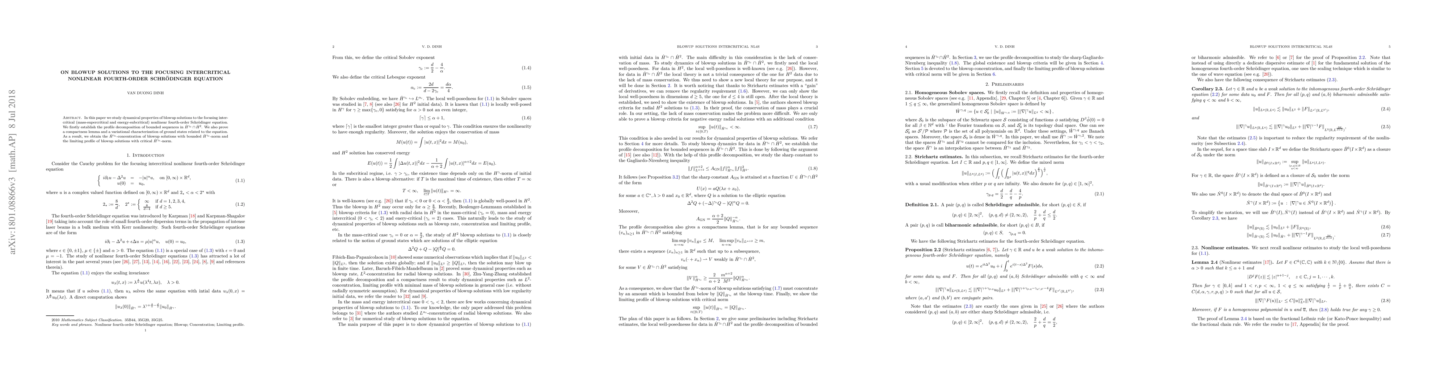 This paper investigates blowup solutions to the focusing intercritical nonlinear fourth-order Schrödinger equation, establishing profile decomposition and compactness lemmas. It concludes with the concentration of blowup solutions and the identification of their limiting profiles.