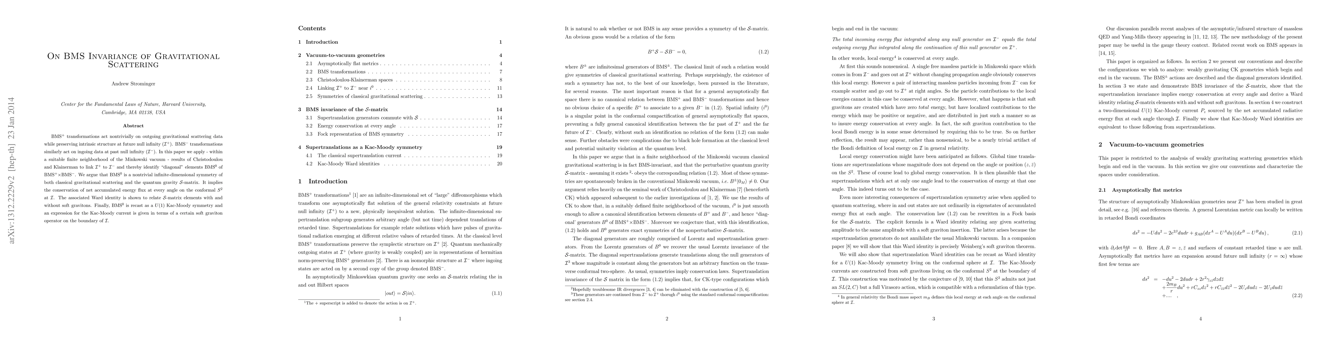This research contributes to understanding the symmetries of gravitational scattering, particularly the role of BMS invariance, which has implications for quantum gravity and the behavior of gravitational systems at large distances.