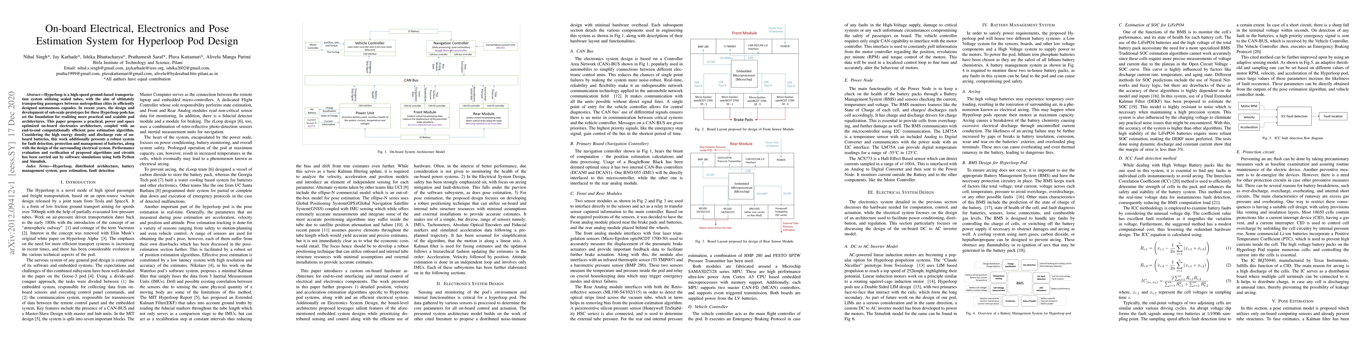A new on-board system for Hyperloop pods is proposed, featuring a power-optimized electronics architecture and a computationally efficient pose estimation algorithm. The system includes robust battery management and fault detection capabilities.