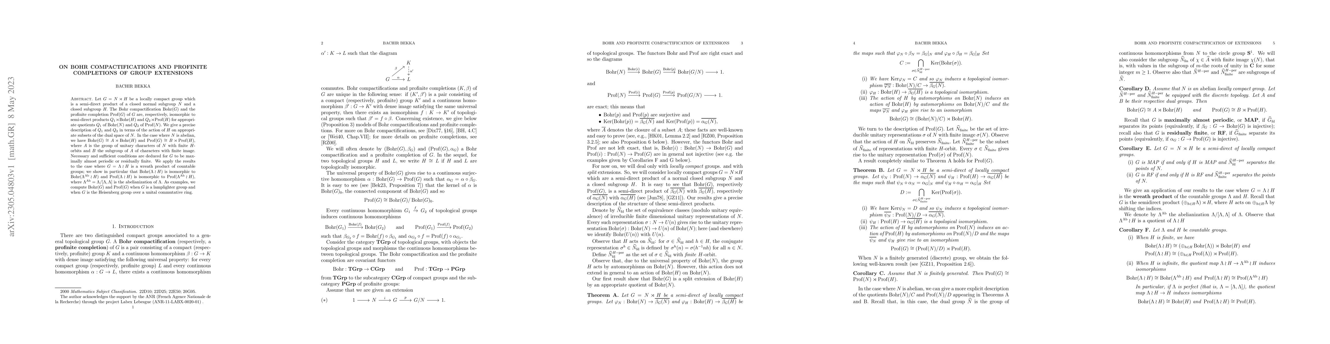 This paper explores the Bohr compactification and profinite completion of locally compact group extensions, specifically semi-direct products $G=N\rtimes H$. It provides a detailed description of the structures of these compactifications in terms of the action of $H$ on $N$'s dual space, and deduces conditions for $G$ to be maximally almost periodic or residually finite.
