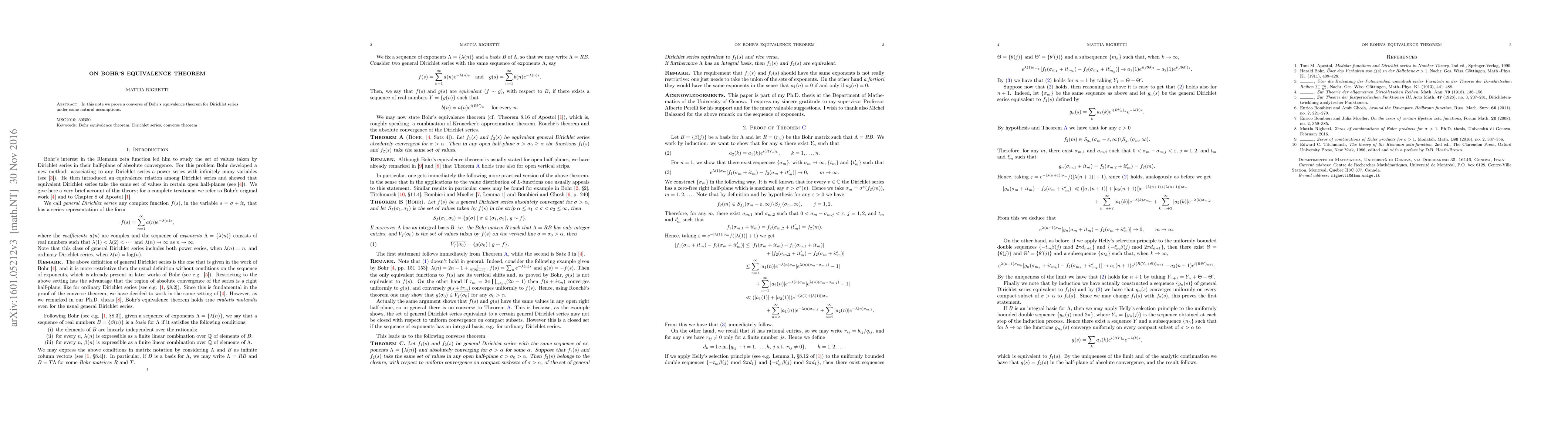 Summary: This paper proves a converse to Bohr's equivalence theorem for Dirichlet series, establishing the result under certain natural assumptions. The findings extend the original theorem by providing a reverse implication.