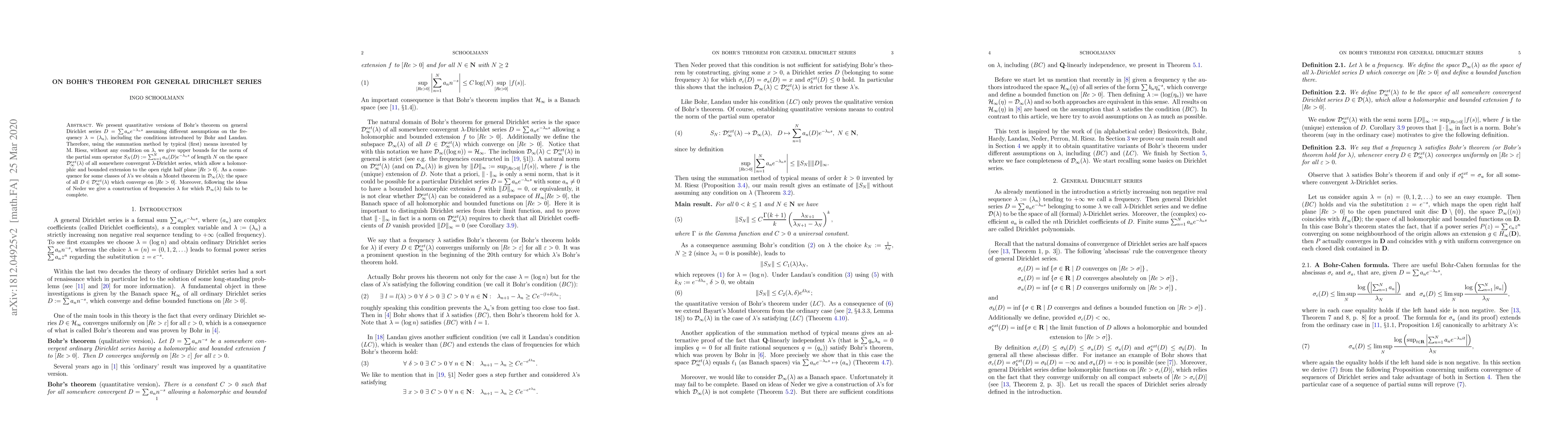 This paper quantitatively refines Bohr's theorem for general Dirichlet series, providing upper bounds for the norm of partial sum operators without specific frequency conditions. It also establishes a Montel theorem for certain classes and constructs frequencies where completeness fails.
