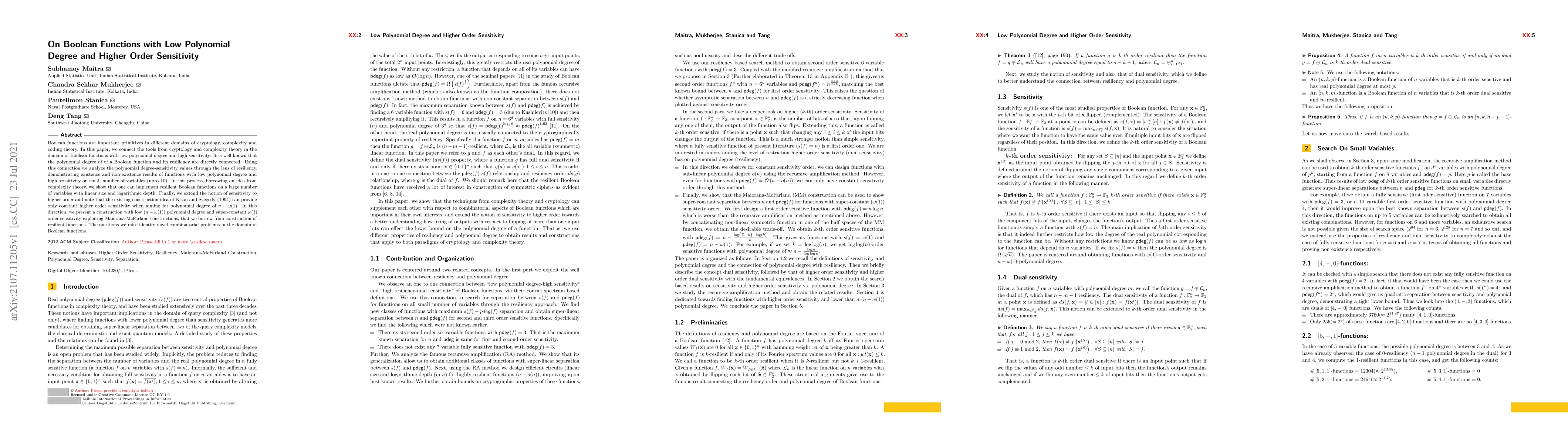 This paper explores Boolean functions with low polynomial degree and high sensitivity, linking tools from cryptology and complexity theory. It demonstrates the existence and non-existence of such functions on a small number of variables and presents a construction with low polynomial degree and super-constant higher order sensitivity, raising novel combinatorial questions.
