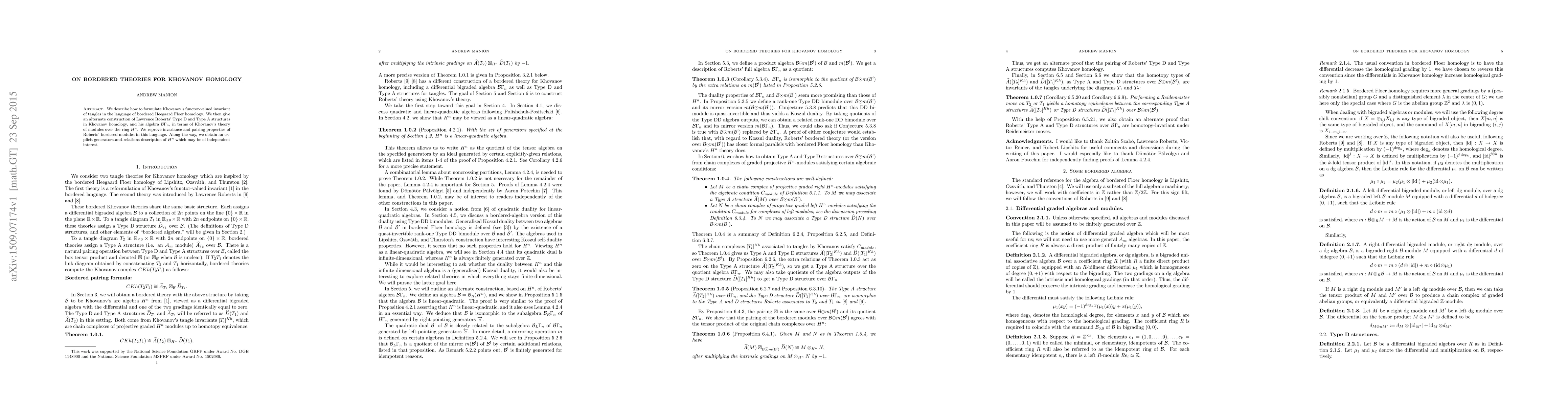 This paper presents a new formulation of Khovanov homology using bordered Heegaard Floer homology, providing an alternate construction of Lawrence Roberts' Type D and Type A structures and his algebra $\mathcal{B}\Gamma_n$. It also reproves invariance and pairing properties of Roberts' bordered modules and offers an explicit generators-and-relations description of the ring $H^n$.