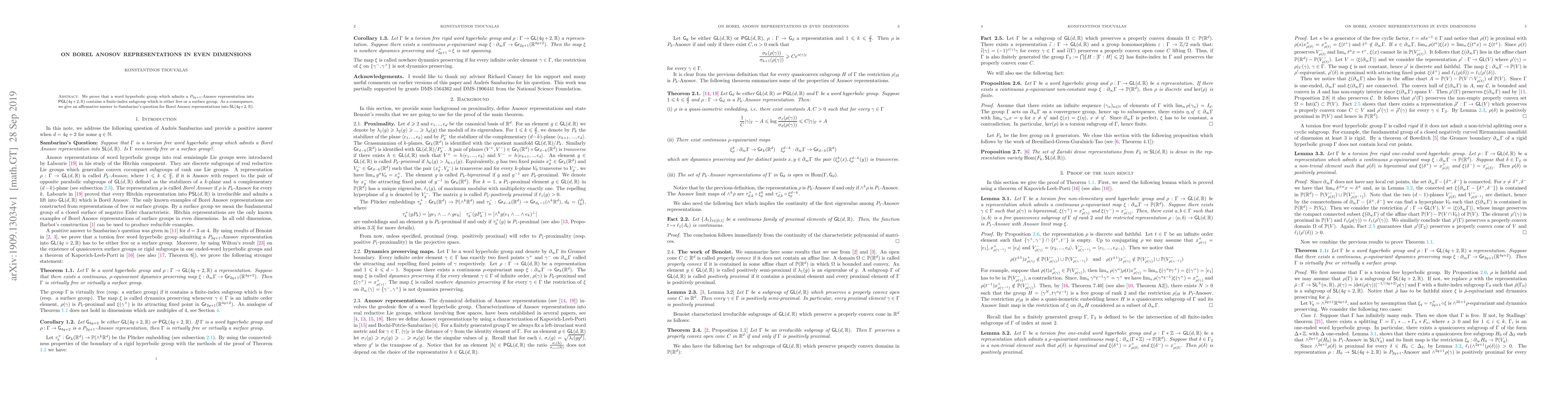 We prove that a word hyperbolic group which admits a $P_{2q+1}$-Anosov representation into $\mathsf{PGL}(4q+2, \mathbb{R})$ contains a finite-index subgroup which is either free or a surface group. As a consequence, we give an affirmative answer to Sambarino's question for Borel Anosov representations into $\mathsf{SL}(4q+2,\mathbb{R})$.