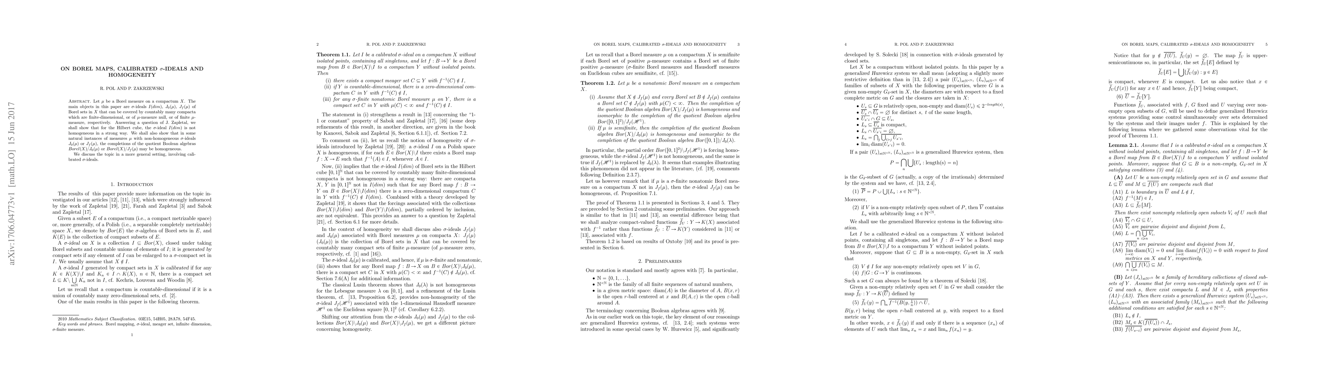 The paper investigates Borel maps, calibrated σ-ideals, and homogeneity through detailed proofs and examples, primarily focusing on the Hilbert cube and other compacta.
