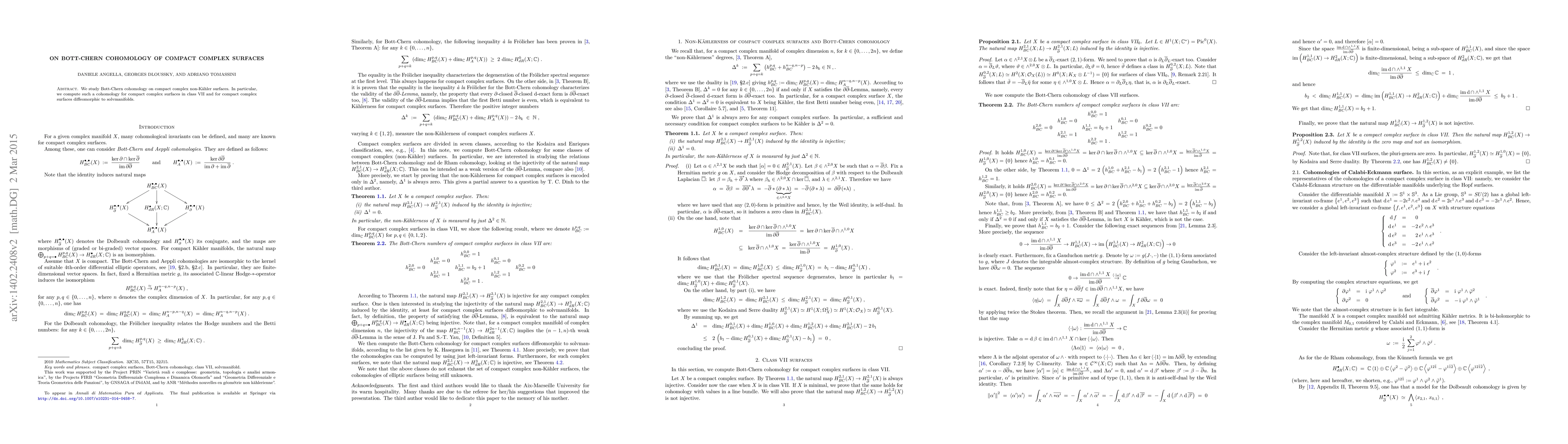 This paper investigates Bott-Chern cohomology on compact complex non-Kähler surfaces, specifically calculating it for surfaces in class VII and those diffeomorphic to solvmanifolds. The findings provide new insights into the topological properties of these complex geometric structures.