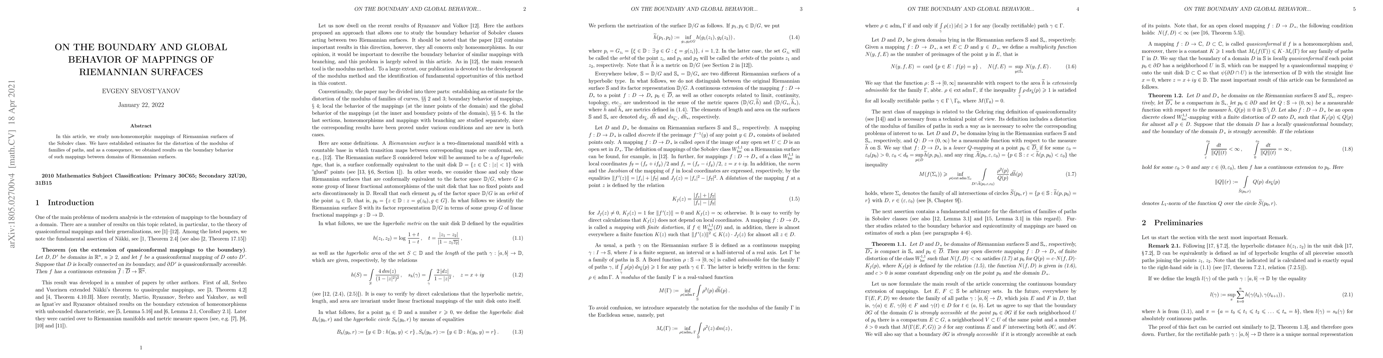 This paper studies non-homeomorphic mappings of Riemannian surfaces in Sobolev class, deriving estimates on distortion of moduli of curve families and revealing insights into the boundary behavior of these mappings.