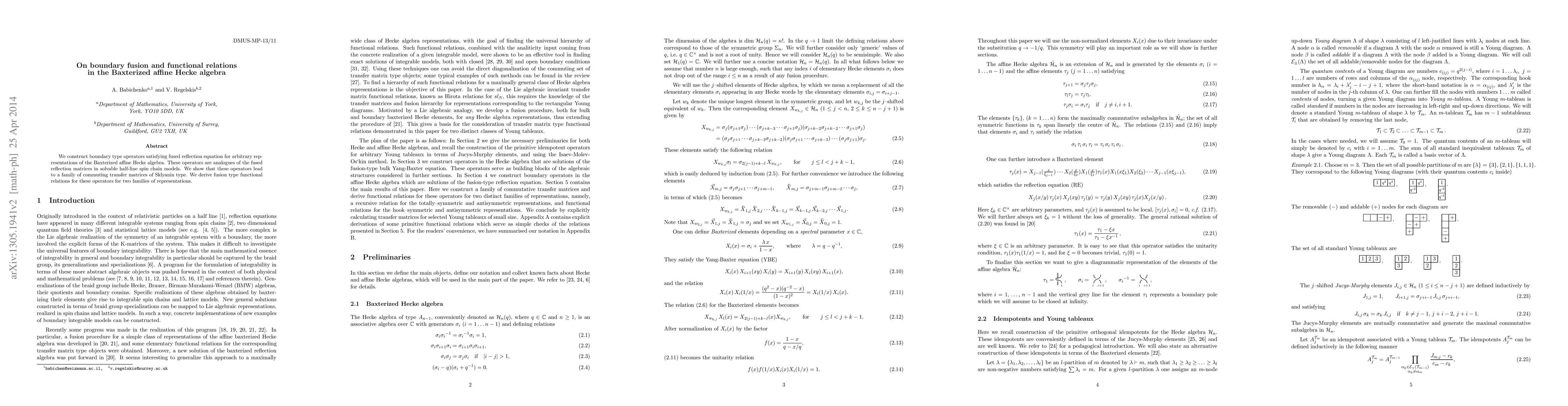 This paper constructs boundary operators for the Baxterized affine Hecke algebra that satisfy fused reflection equations, analogous to those in spin chain models. It demonstrates that these operators generate commuting transfer matrices of Sklyanin type and derives fusion functional relations for two representation families.