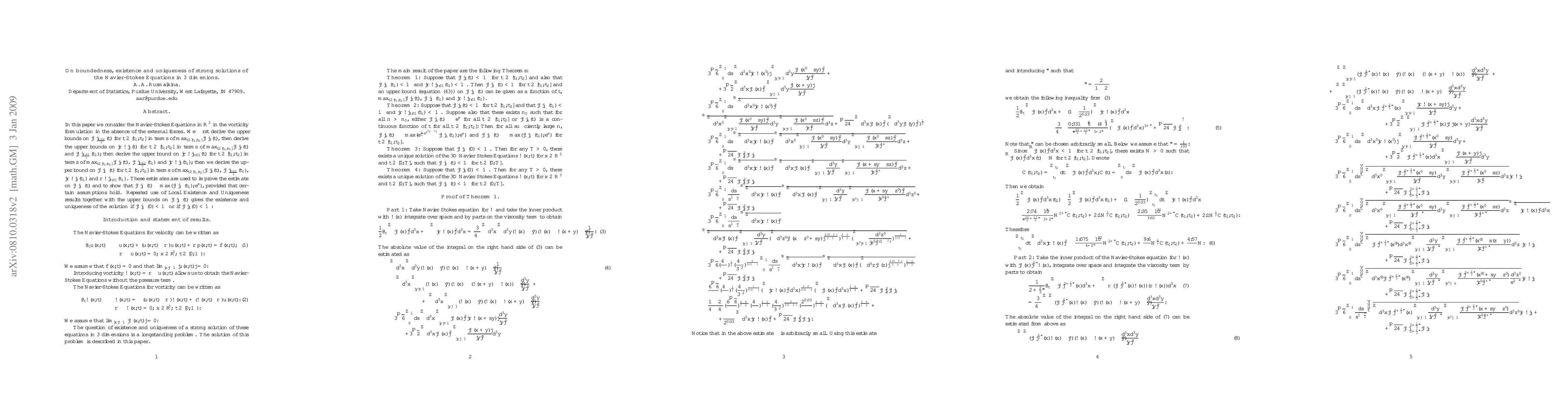 This paper investigates the Navier-Stokes Equations in 3D, deriving upper bounds on the vorticity's L_{infinity} norm and demonstrating global existence and uniqueness of solutions under finite initial vorticity conditions, either L_{infinity} or L_4 norm.