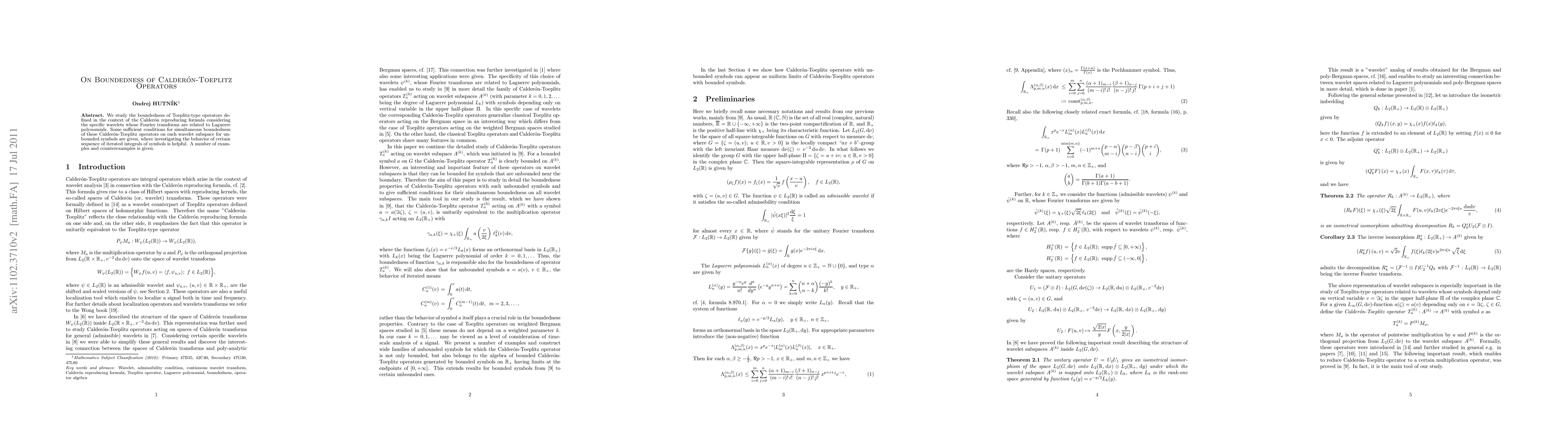 We study the boundedness of Toeplitz-type operators defined in the context of the Calder\'on reproducing formula considering the specific wavelets whose Fourier transforms are related to Laguerre polynomials. Some sufficient conditions for simultaneous boundedness of these Calder\'on-Toeplitz operators on each wavelet subspace for unbounded symbols are given, where investigating the behavior of certain sequence of iterated integrals of symbols is helpful. A number of examples and counterexamples is given.