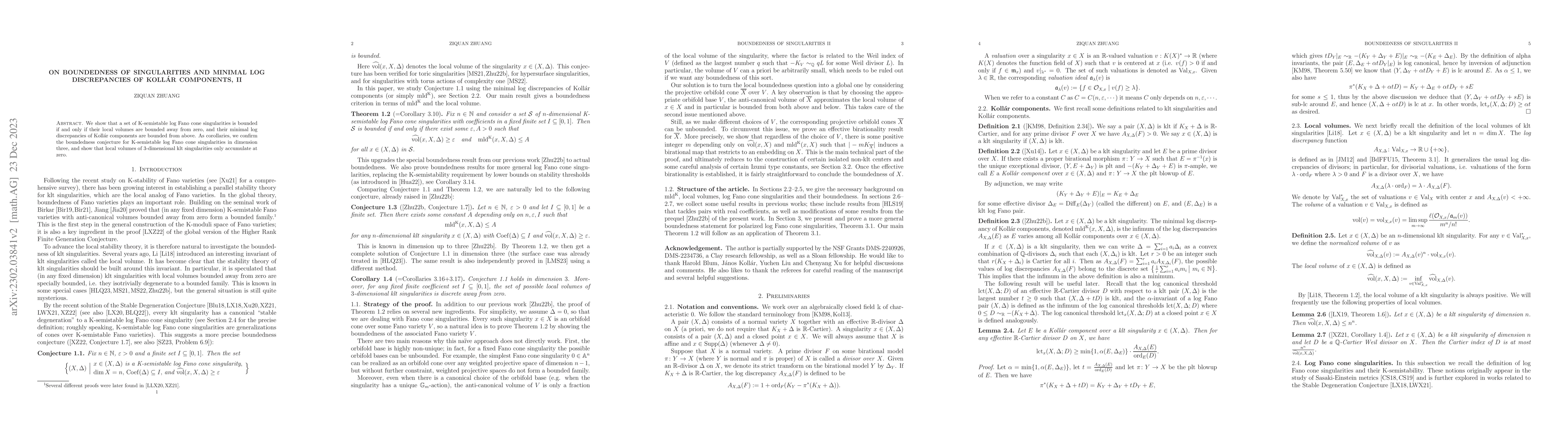 Summary: This paper demonstrates that K-semistable log Fano cone singularities are bounded if their local volumes are positive and their minimal log discrepancies are upper-bounded. It also confirms the boundedness conjecture for three-dimensional cases and shows that local volumes of 3-dimensional klt singularities do not accumulate at non-zero values.