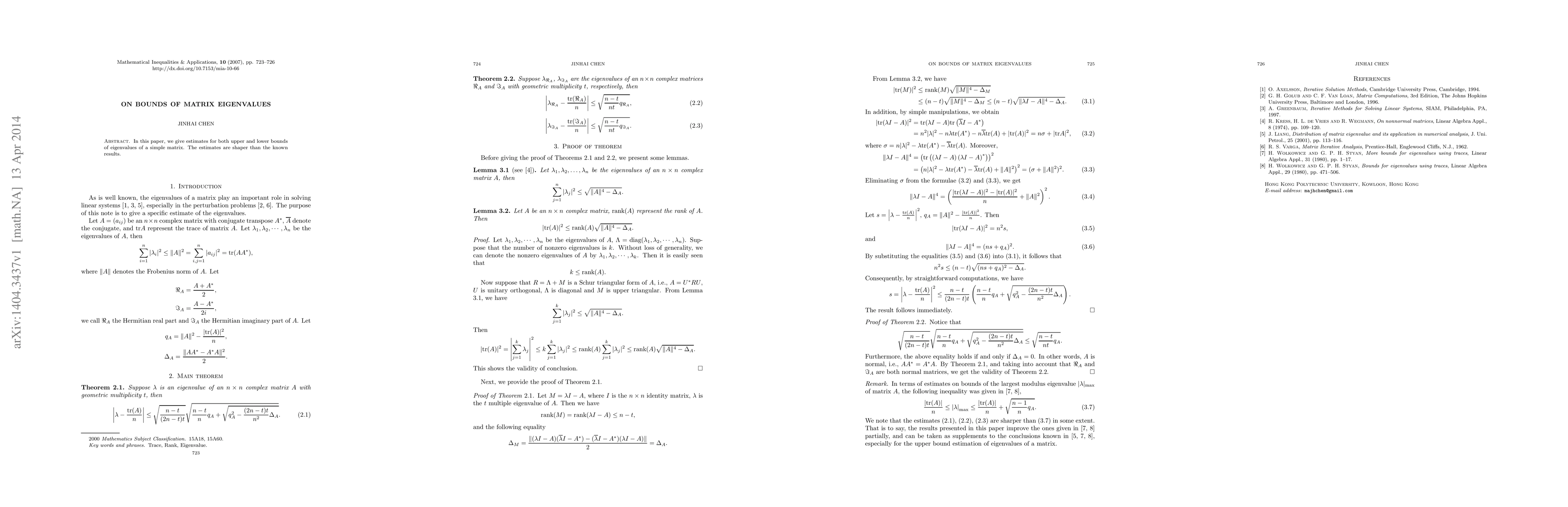 This paper presents estimates for upper and lower bounds of matrix eigenvalues, offering sharper results than existing knowledge.