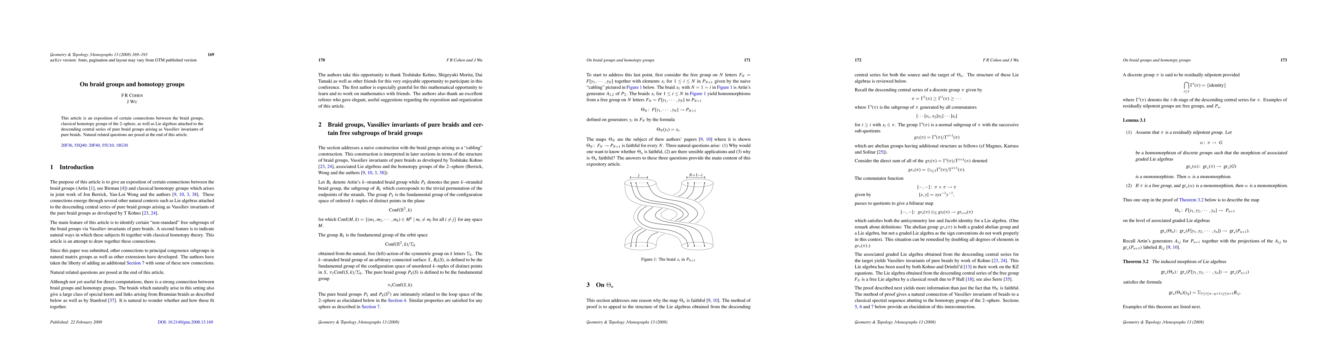 This article is an exposition of certain connections between the braid groups, classical homotopy groups of the 2-sphere, as well as Lie algebras attached to the descending central series of pure braid groups arising as Vassiliev invariants of pure braids. Natural related questions are posed at the end of this article.